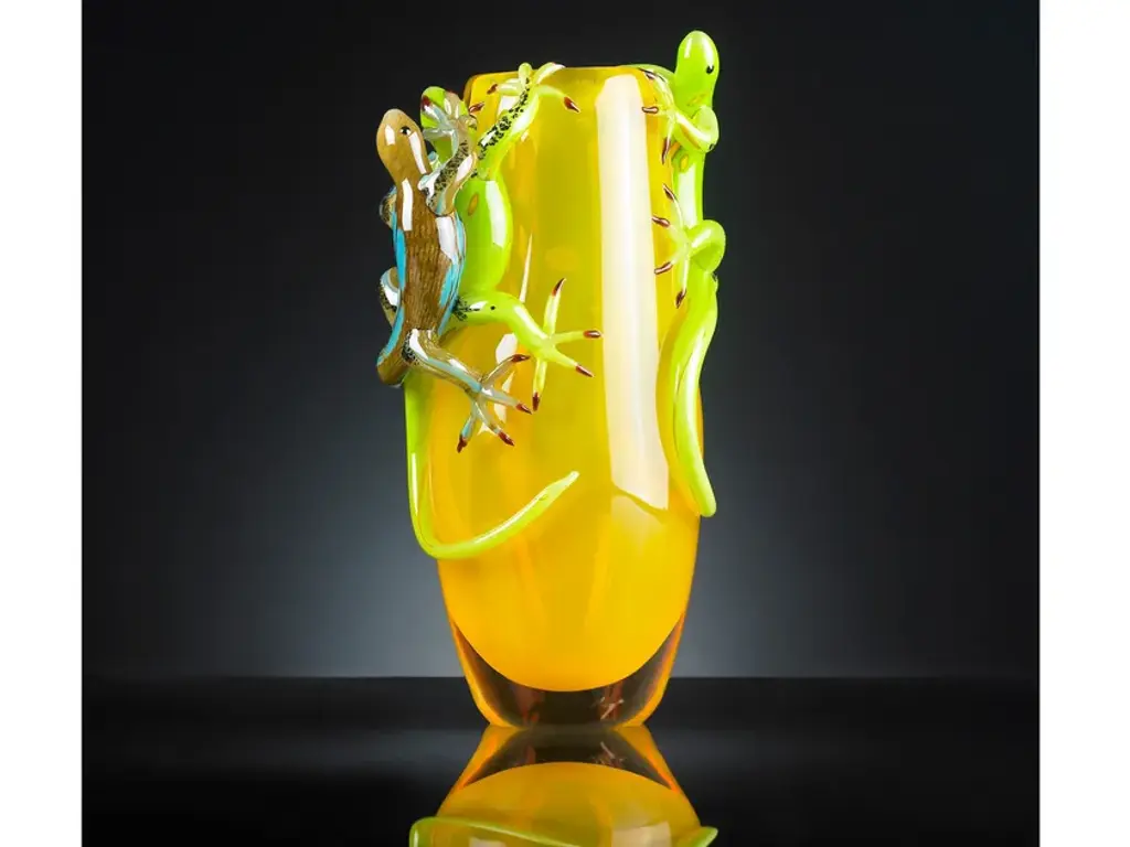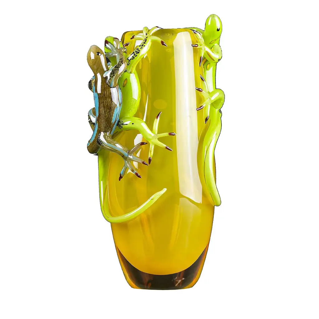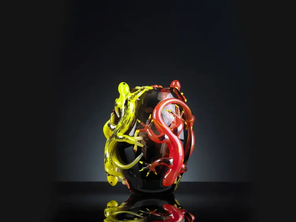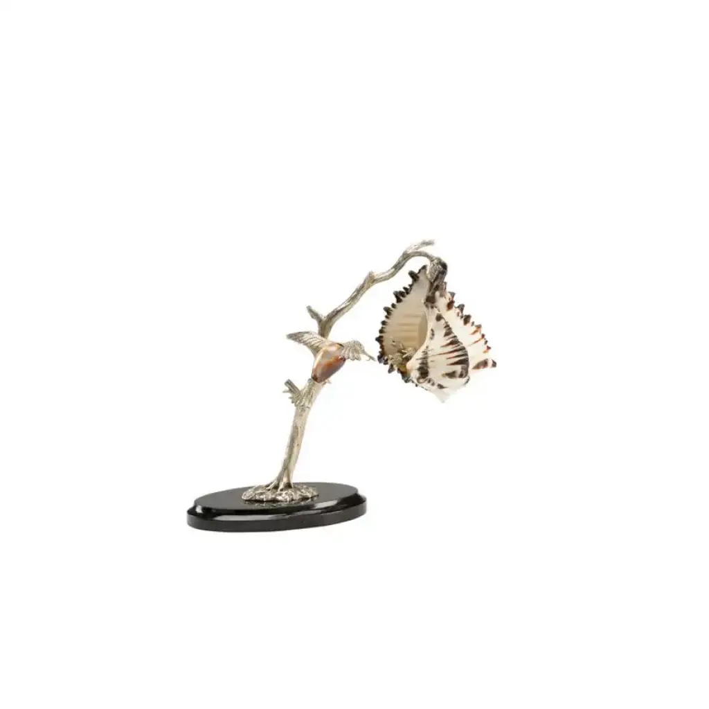 This beautiful bronze statue uses a process known as enameling over bronze, to create the classy blue finish of the frogs. In this statue, two blue frogs perch themselves on curled sawgrass, ready to pounce at their next meal, a resting dragonfly. This beautiful bronze statue would be a great addition to any home or office in need of a work of art. Size: 14"L x 8"W x 12"H. Weight is: 4Lb