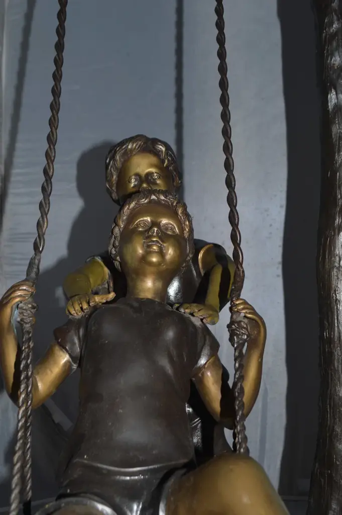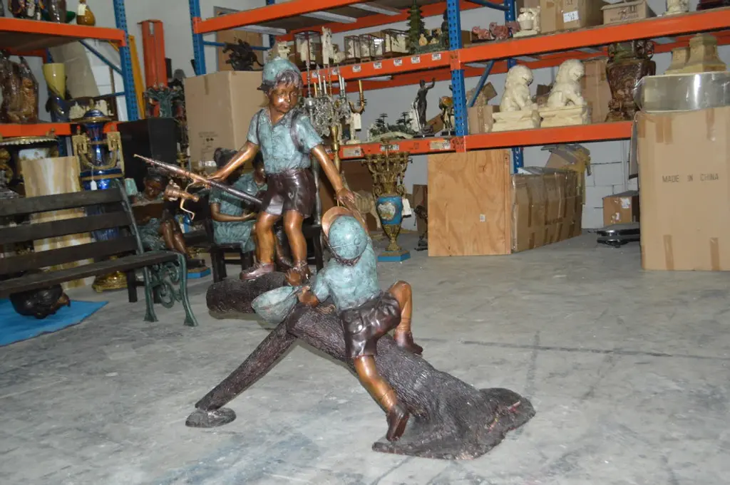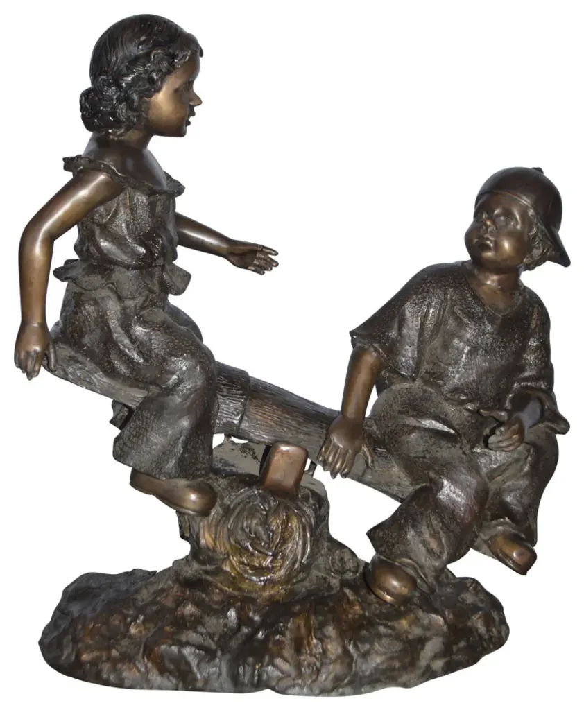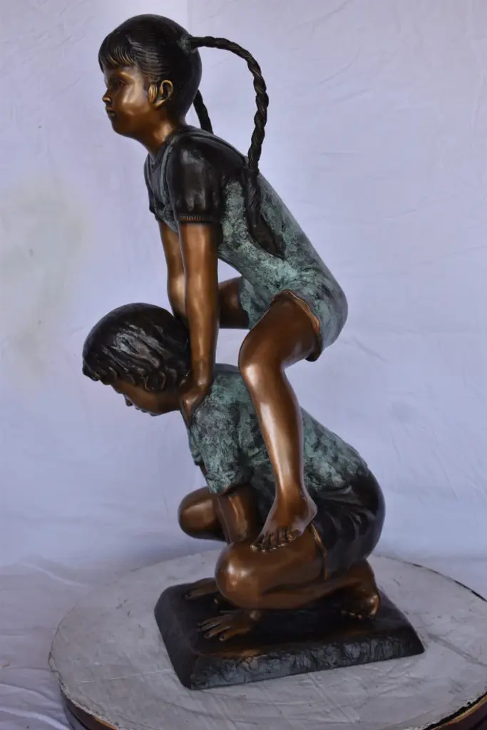 The "2 Boys Climbing a Ladder" sculpture is rendered in great detail. Curiously funny, it leaves us wondering "what are they up to". Multi-colored in bronze and verdigris patina, this sculpture will complete your garden and leave you smiling.