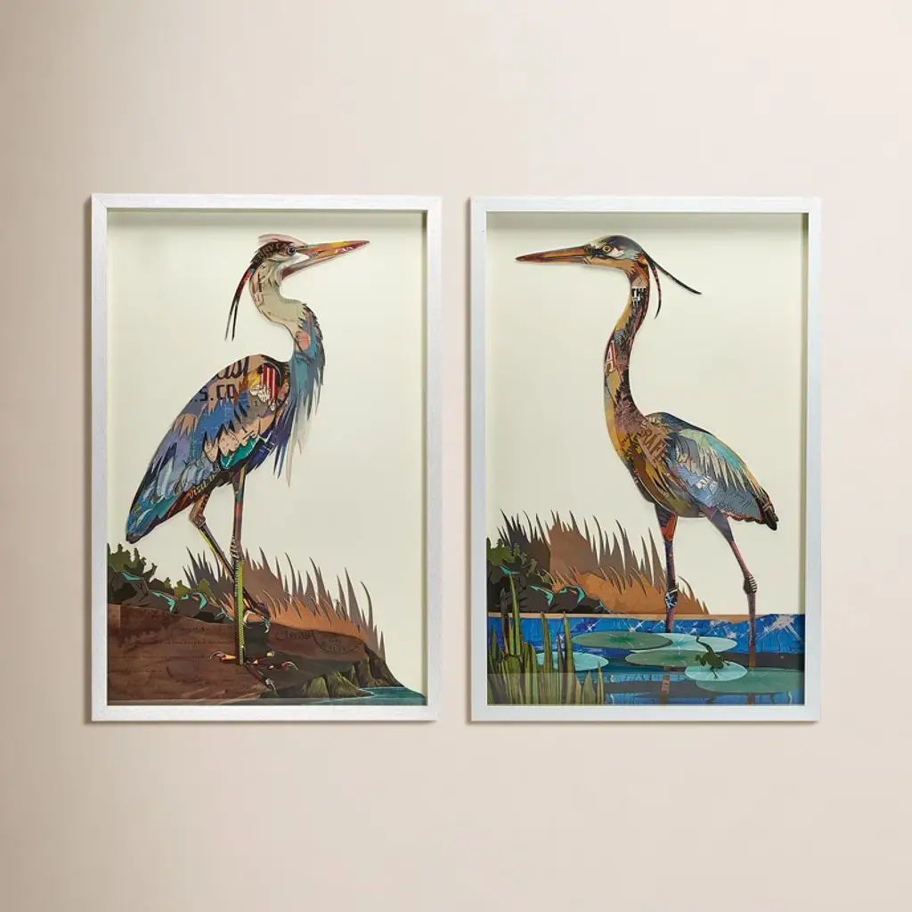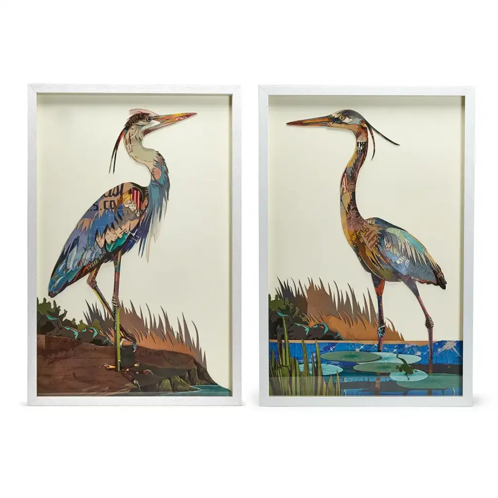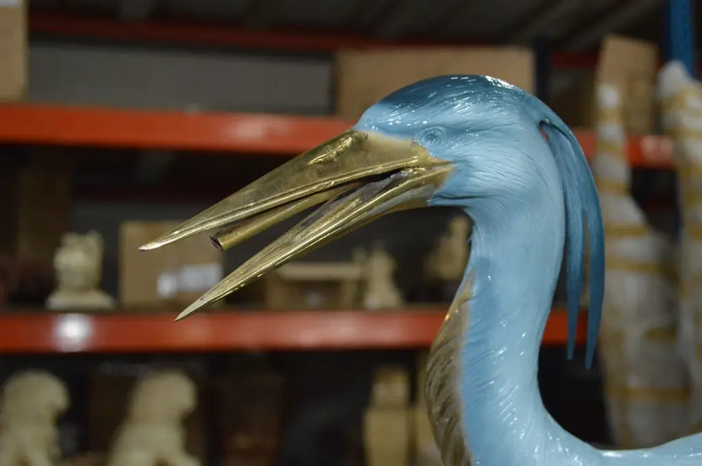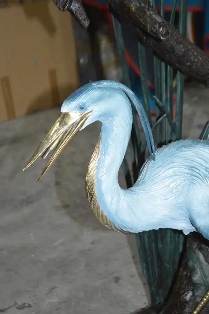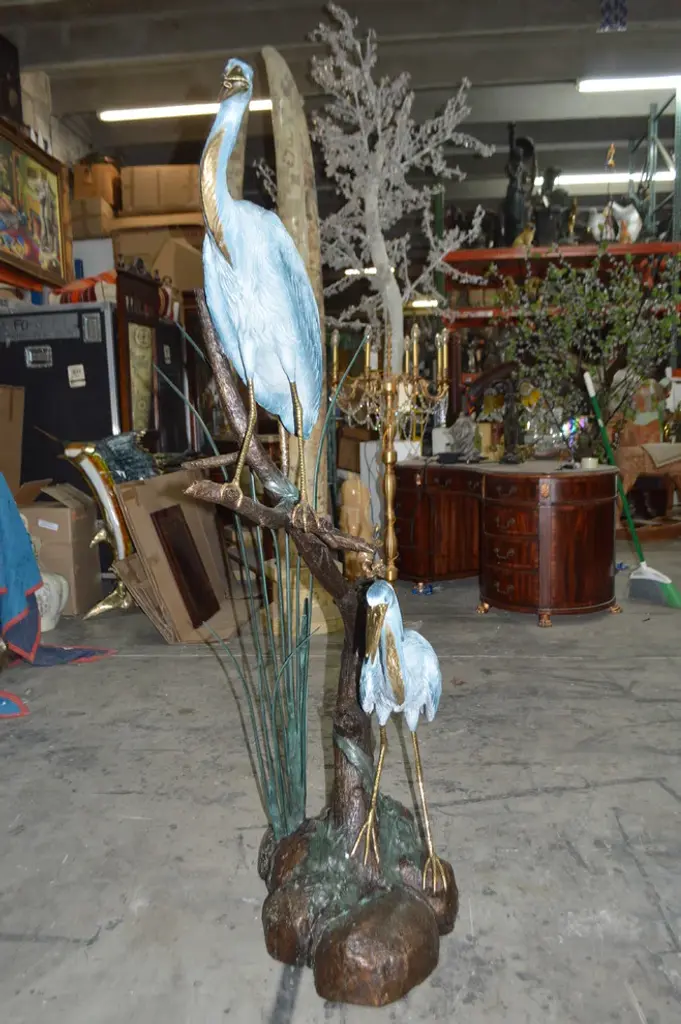 Two Large Cranes Fountain Bronze Statue - Size: 36"l X 21"w X 64"h.