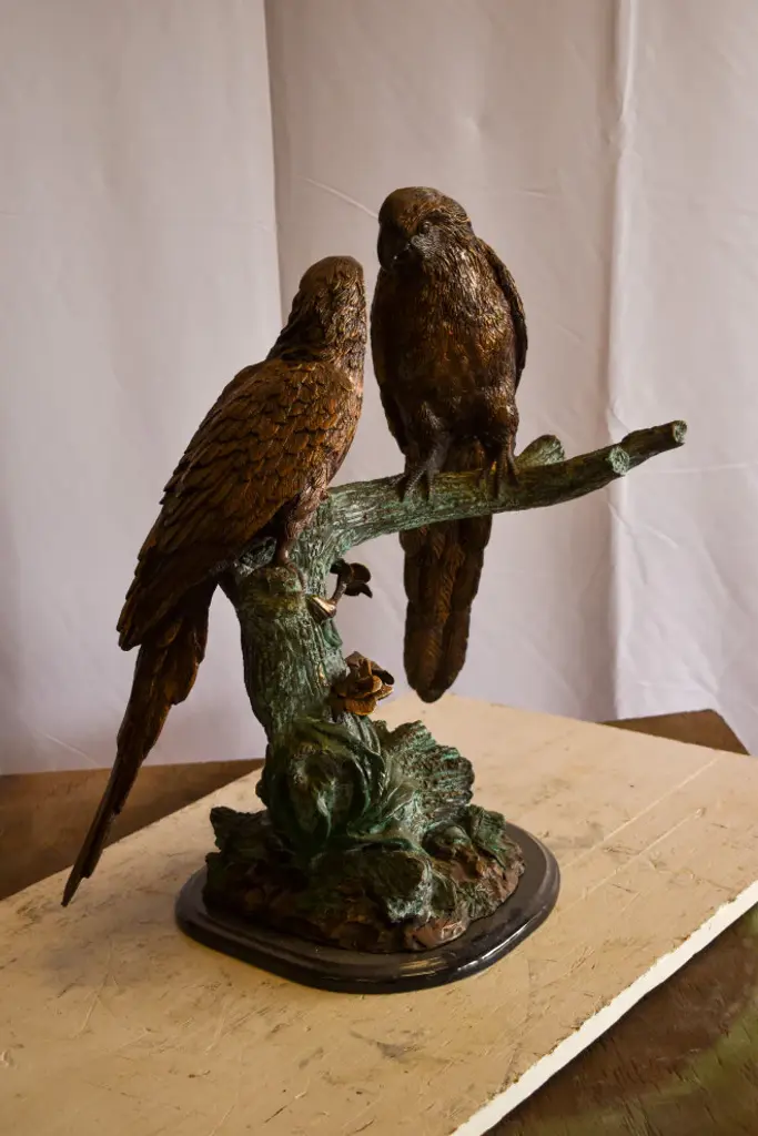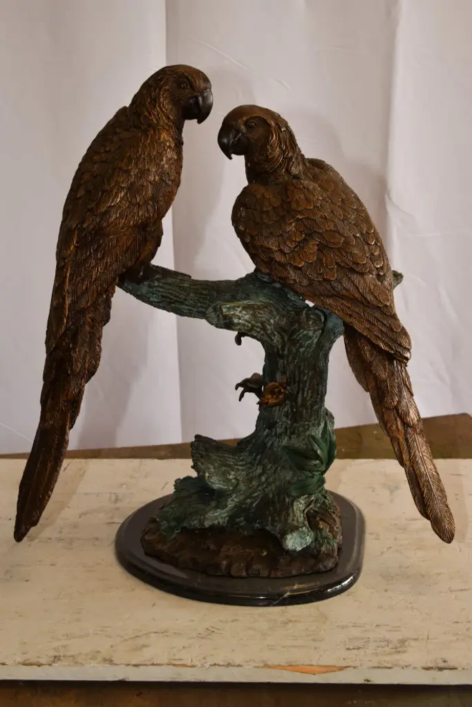 Two Parrots On A Tree Bronze Statue Brown And Green Patina 13" X 20" X 23"h