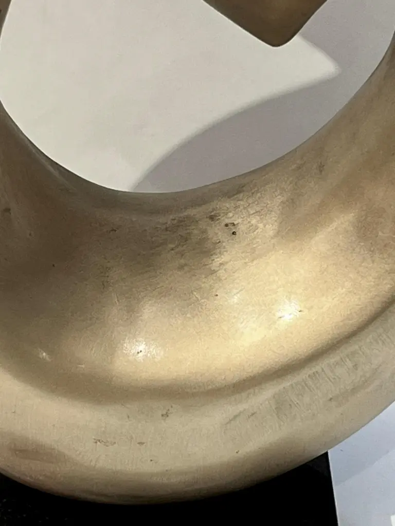Cosulich Interiors & Antiques’ biggest aspiration, through this Contemporary Collection, launched for WNWN 2023, is to communicate the power of colors to trigger personal healthy environments through your own narrative. Embracing Work of Art entirely hand-crafted in Italy of organic modern shape, realized in bronze, decorated with a hand-made finish patina in gold. Raised on a black granite base. These sculptures explore how adaptability in Design is the answer for transforming Art into a strategy to fulfill different functions: options of materials either for indoor or outdoor, choice of sizes, finishes, and colors that adapt to everyone's personality. Signed FpArt with authenticity certificate. Weight: 23.3 lbs
