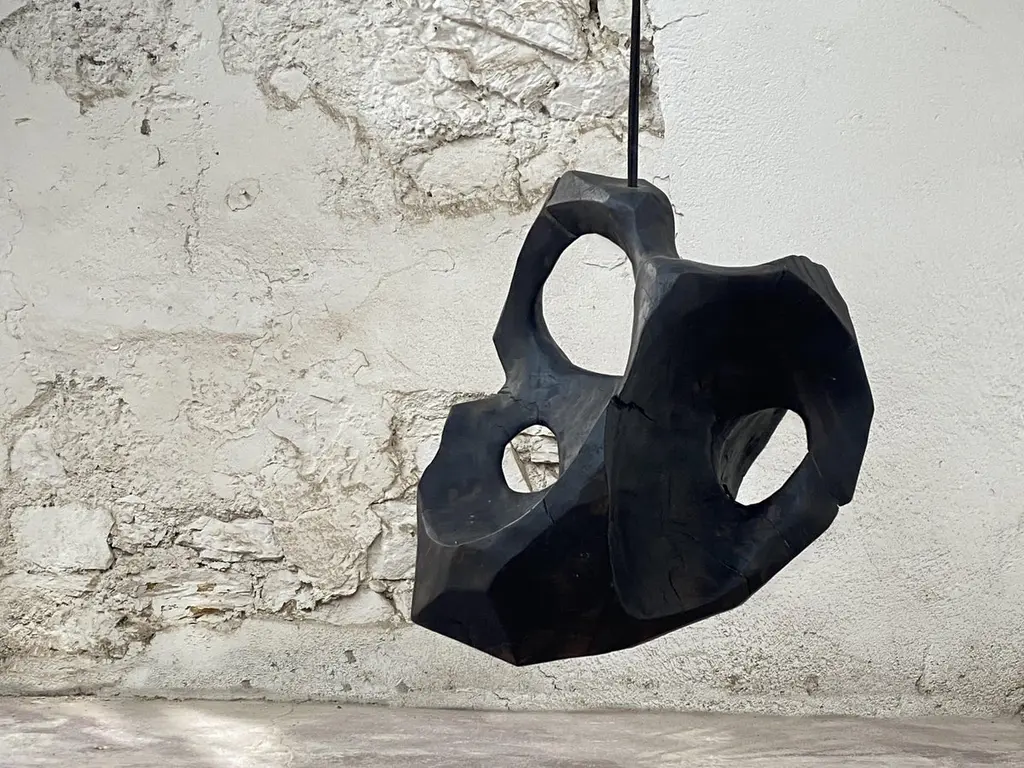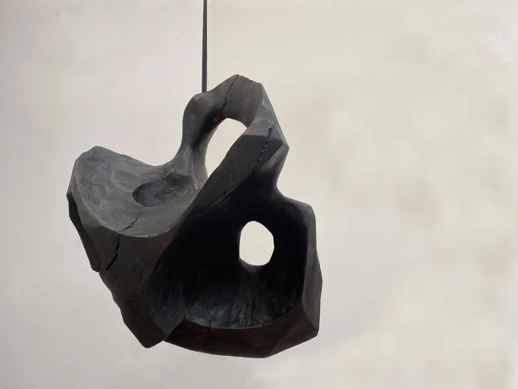 Unique Black Carved Forms, Floating Organic Shapes Suspension By Jérôme Pereira