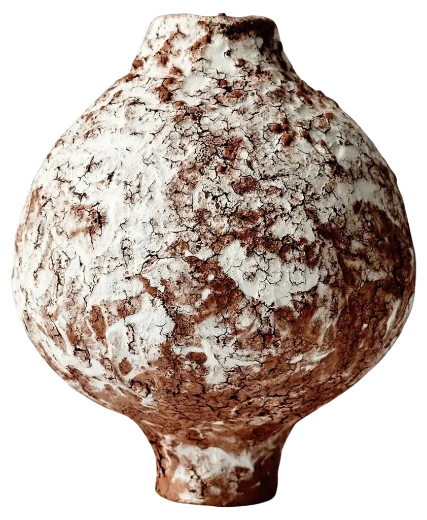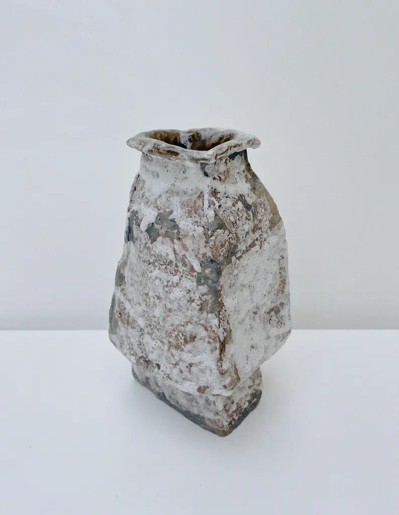 Unique III Stoneware sculpture by Lisa GeueDimensions: D 12 x W 10 x H 21.5 cmMaterials: Stoneware with Chamotte, Porcelain Slip, Kaolin, multiple firingsNon-functional.Lisa Geue works primarily in ceramic, creating ancient shape inspired vessels and organic looking sculptures with a focus on form and experimental glazing. With a background in photography and ?ln, composition plays a role in both, the visual language and the photographic archive-like work.Born 1988 in East Germany, she went to Academy of Visual Arts Leipzig from 2013 - 2019 to study Photography. Then moving to Berlin, she worked for Galleries like Julia Stoschek Collection.In 2019 she traveled to Naarm (Melbourne) and Jan Juc, Australia and lived at the ocean. Deepening her connection with nature, natural processes like mineralization, decomposition of coastal rocks through saltwater or cycles like high and low tide, have become inspiration for her clay practice. Geue has always appreciated and felt drawn to indigenous practices and ancient techniques which have been a signi?cant in?uence in terms of resourcing mindfully and appreciating the craft she is doing.