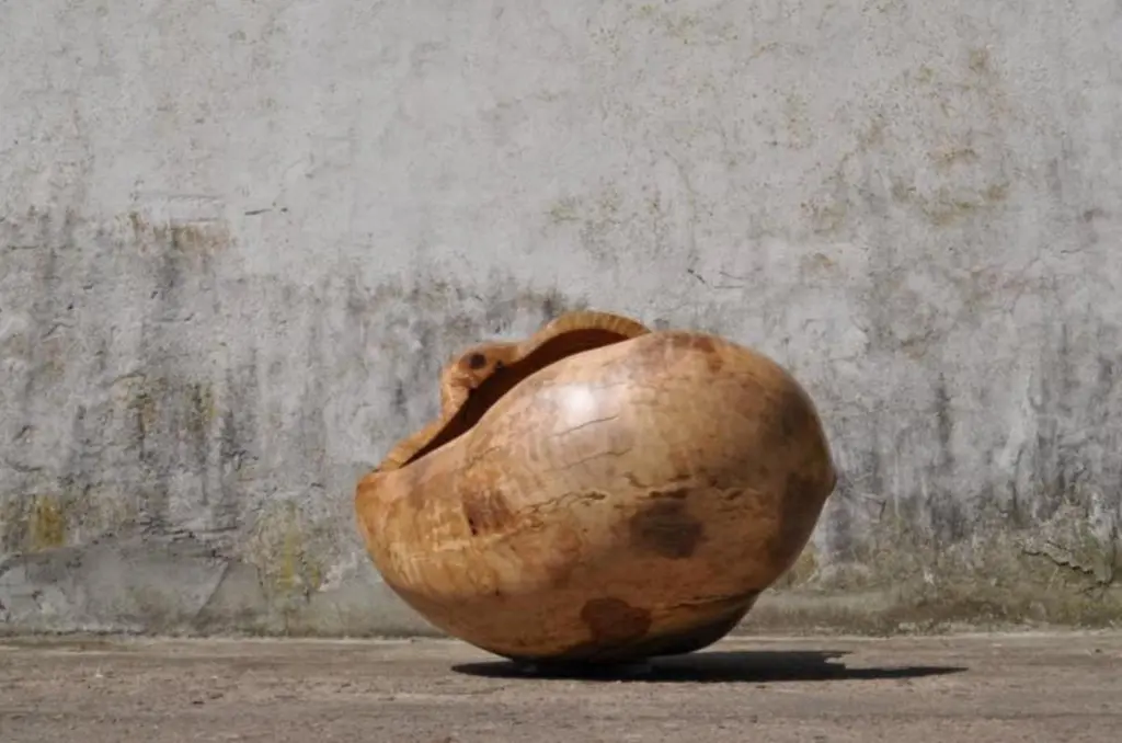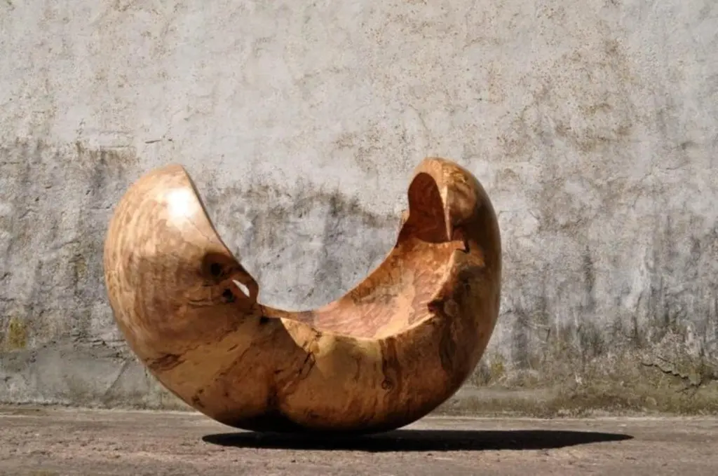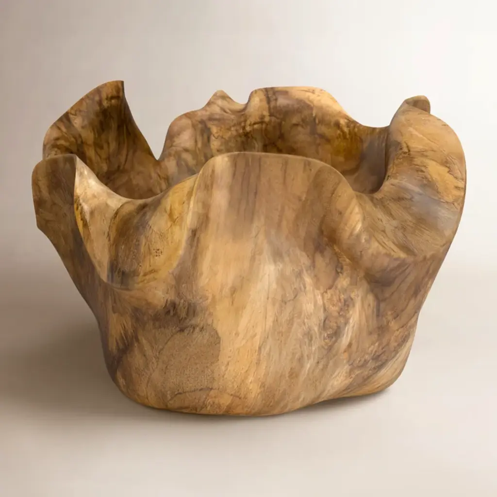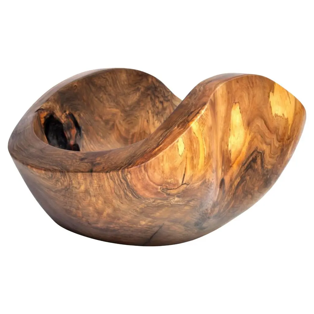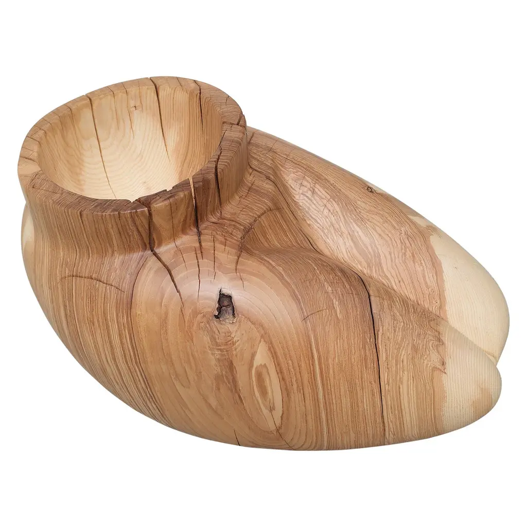 Unique signed bowl by Jörg Pietschmann.Bowl beech · V1346Measures: H 76 x W 90 x D 75 cmLarge bowl sculpture from the bulges of a beechtree. Polished oil finish.In Pietschmann’s sculptures, trees that for centuries were part of a landscape and founded in primordial forces tell stories inscribed in the memory of their fibers.The forms Jörg Pietschmann pares from ancient trees are extensive and astonish with their physical presence, a combination of elegance and primeval nature. Pietschmann’s sculptures are monuments to the trees from which they derive.Being endowed with the ruggedness of primeval matter gives them a veritable vitality: figures that appear to have grown into their sculptural form of their own accord. But Pietschmann’s tangibly present bodies have undergone a considerable degree of metamorphosis.In order to generate these unique tree specimens he examines the tree’s morphology and intrinsic inner map until the courses of its grain, of a curve, knots and cracks concur with his projections. The exploratory process is accompanied by constant modification, giving at the start of each new piece no more than an intimation of the figure that will later emerge. In their completion, Pietschmann’s sculptures once more become universal form.Jörg Pietschmann`s workshop is situated on the countryside close to Hamburg. He works with indigenous timber as oak, lime tree, beech, poplar, olive tree and maple felled by the wind or human hand, together with tropical timber found on his travels.