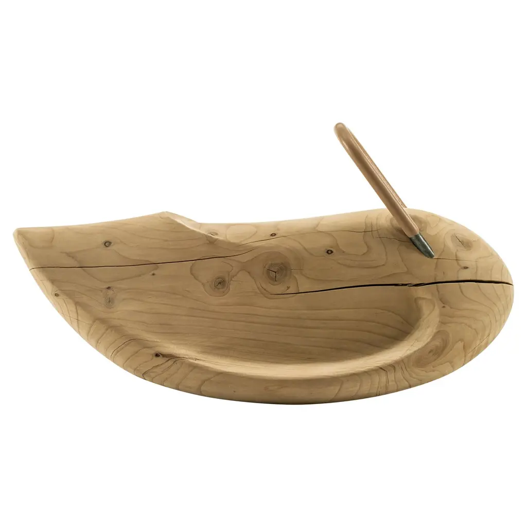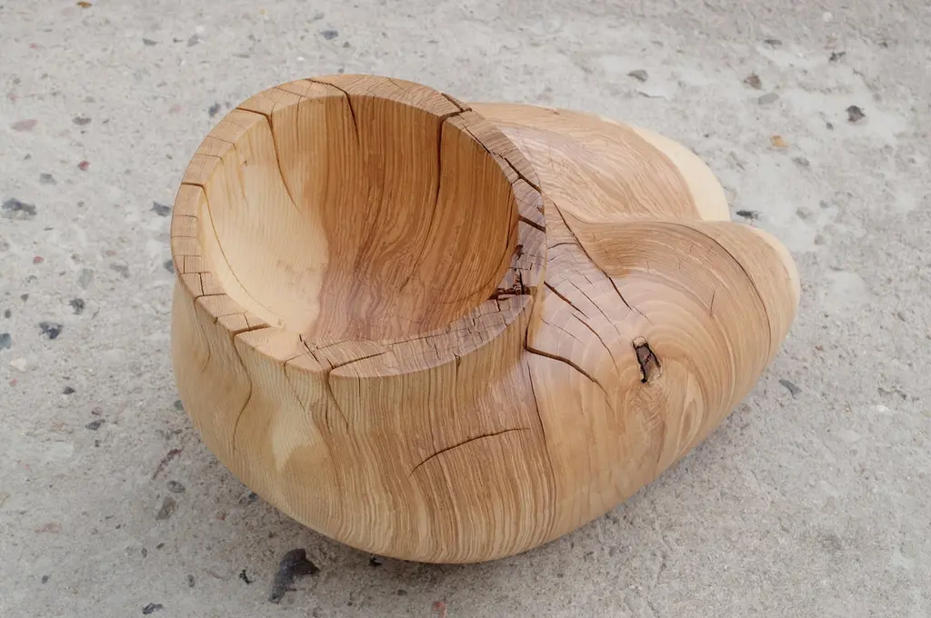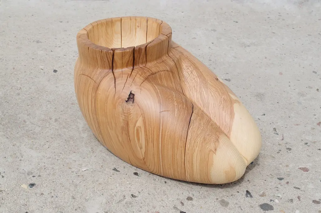 Unique sculpted vessel by Jörg PietschmannAshDimensions: H 34 x W 62 x D 37 cmSide piece of an old oak with exceptional burl on colorful legs. Polished oil finish.In Pietschmann’s sculptures, trees that for centuries were part of a landscape and founded in primordial forces tell stories inscribed in the memory of their fibers.The forms Jörg Pietschmann pares from ancient trees are extensive and astonish with their physical presence, a combination of elegance and primeval nature. Pietschmann’s sculptures are monuments to the trees from which they derive.Being endowed with the ruggedness of primeval matter gives them a veritable vitality: figures that appear to have grown into their sculptural form of their own accord. But Pietschmann’s tangibly present bodies have undergone a considerable degree of metamorphosis.In order to generate these unique tree specimens he examines the tree’s morphology and intrinsic inner map until the courses of its grain, of a curve, knots and cracks concur with his projections. The exploratory process is accompanied by constant modification, giving at the start of each new piece no more than an intimation of the figure that will later emerge. In their completion, Pietschmann’s sculptures once more become universal form.