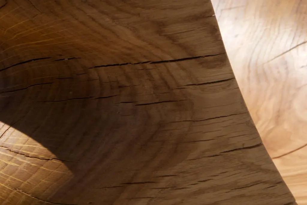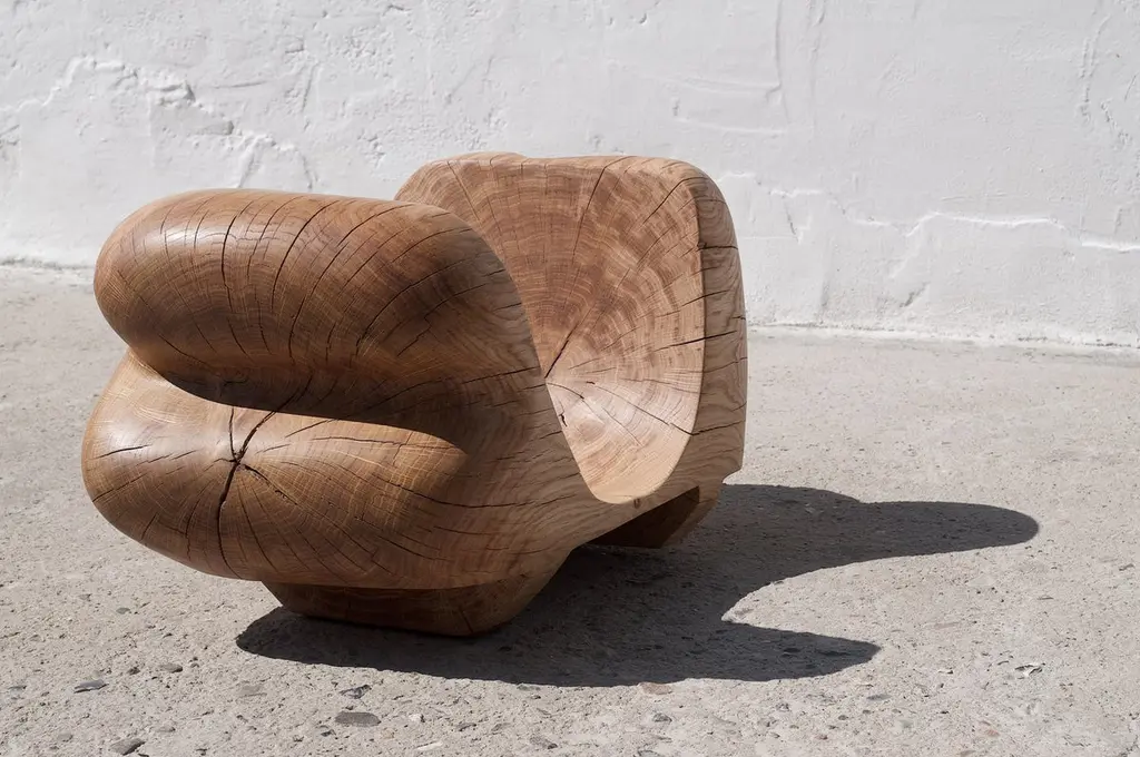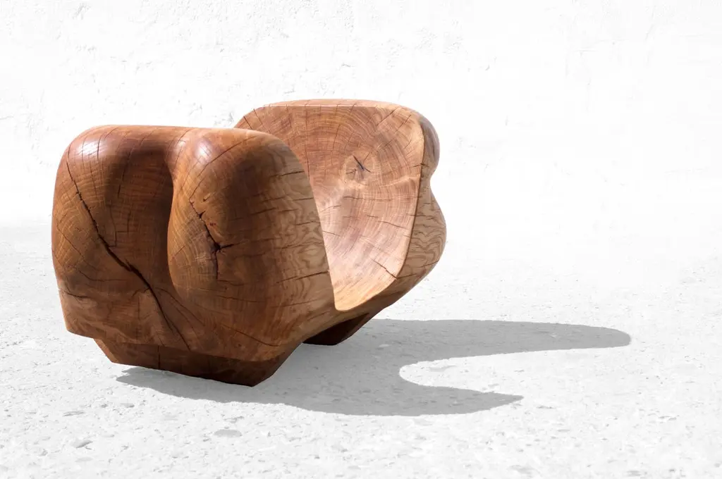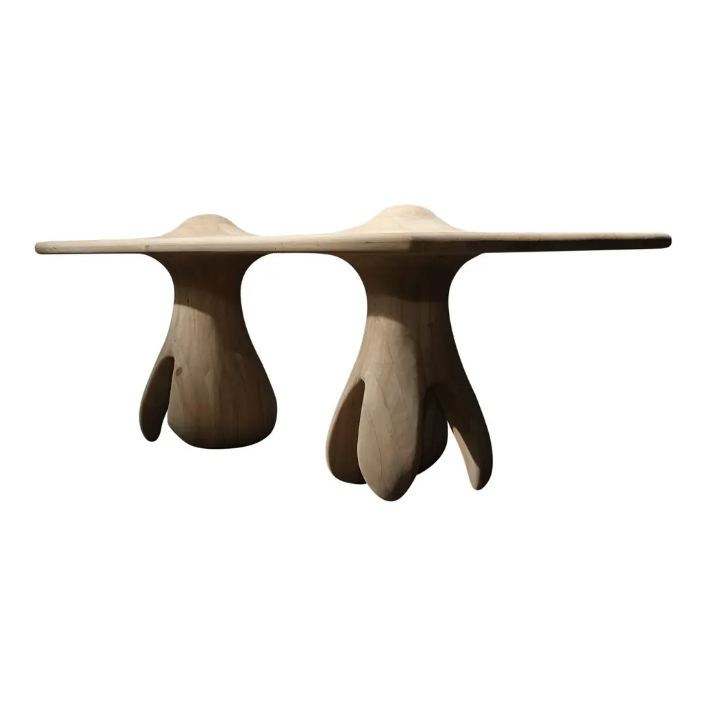 Unique signed table by Jörg PietschmannOakDimensions: H 38 x W 70 x D 37 cmSide piece of an old oak with exceptional burl on colorful legs. Polished oil finish.In Pietschmann’s sculptures, trees that for centuries were part of a landscape and founded in primordial forces tell stories inscribed in the memory of their fibers.The forms Jörg Pietschmann pares from ancient trees are extensive and astonish with their physical presence, a combination of elegance and primeval nature. Pietschmann’s sculptures are monuments to the trees from which they derive.Being endowed with the ruggedness of primeval matter gives them a veritable vitality: figures that appear to have grown into their sculptural form of their own accord. But Pietschmann’s tangibly present bodies have undergone a considerable degree of metamorphosis.In order to generate these unique tree specimens he examines the tree’s morphology and intrinsic inner map until the courses of its grain, of a curve, knots and cracks concur with his projections. The exploratory process is accompanied by constant modification, giving at the start of each new piece no more than an intimation of the figure that will later emerge. In their completion, Pietschmann’s sculptures once more become universal form.