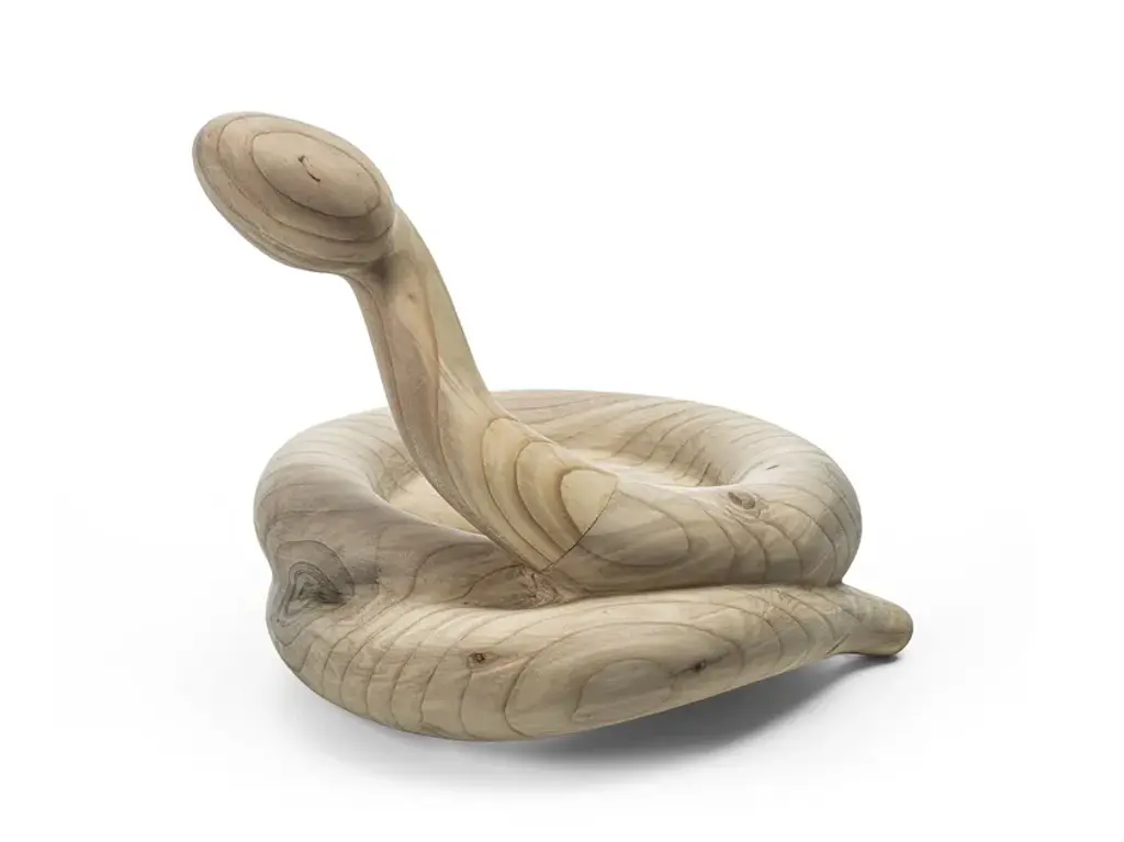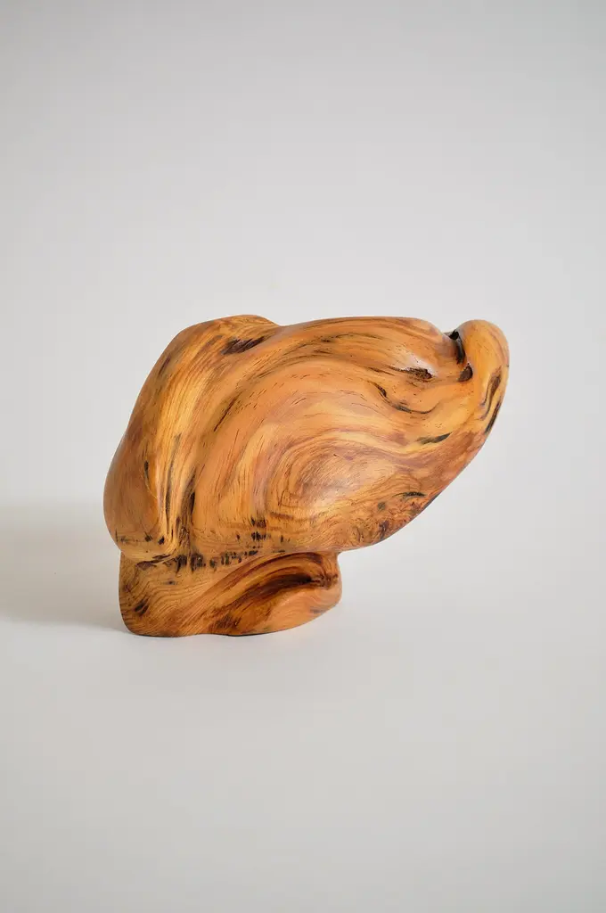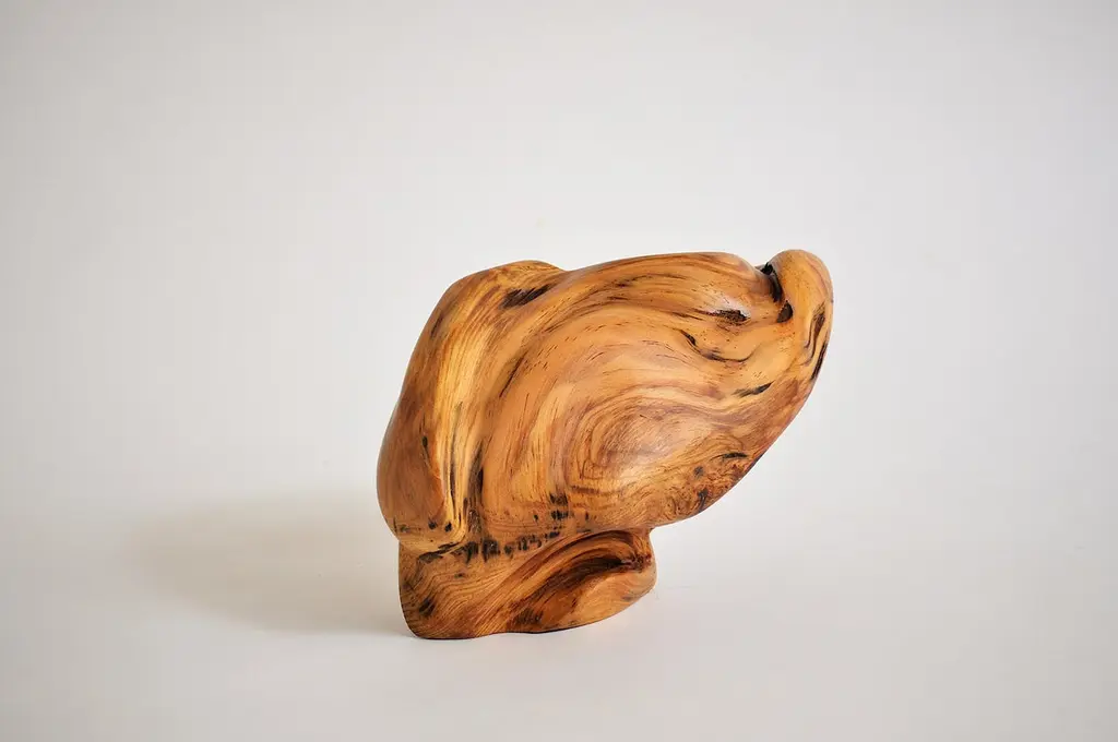 Unique sculpture signed by Jörg PietschmannMaterials: Aleppo pineMeasures: H 15 x W 25 x D 16 cmIn Pietschmann’s sculptures, trees that for centuries were part of a landscape and founded in primordial forces tell stories inscribed in the memory of their fibres.The forms Jörg Pietschmann pares from ancient trees are extensive and astonish with their physical presence, a combination of elegance and primeval nature. Pietschmann’s sculptures are monuments to the trees from which they derive.Being endowed with the ruggedness of primeval matter gives them a veritable vitality: figures that appear to have grown into their sculptural form of their own accord. But Pietschmann’s tangibly present bodies have undergone a considerable degree of metamorphosis.In order to generate these unique tree specimens he examines the tree’s morphology and intrinsic inner map until the courses of its grain, of a curve, knots and cracks concur with his projections. The exploratory process is accompanied by constant modification, giving at the start of each new piece no more than an intimation of the figure that will later emerge. In their completion, Pietschmann’s sculptures once more become universal form.Jörg Pietschmann`s workshop is situated on the countryside close to Hamburg. He works with indigenous timber as oak, lime tree, beech, poplar, olive tree and maple felled by the wind or human hand, together with tropical timber found on his travels.