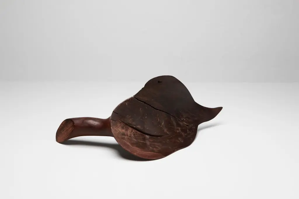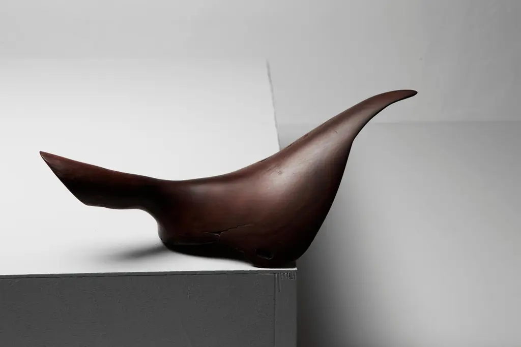 Unique sculpture signed by Jörg PietschmannMaterials: Tropical DriftwoodMeasures: H 13 x W 36 x D 16 cmIn Pietschmann’s sculptures, trees that for centuries were part of a landscape and founded in primordial forces tell stories inscribed in the memory of their fibres.The forms Jörg Pietschmann pares from ancient trees are extensive and astonish with their physical presence, a combination of elegance and primeval nature. Pietschmann’s sculptures are monuments to the trees from which they derive.Being endowed with the ruggedness of primeval matter gives them a veritable vitality: figures that appear to have grown into their sculptural form of their own accord. But Pietschmann’s tangibly present bodies have undergone a considerable degree of metamorphosis.In order to generate these unique tree specimens he examines the tree’s morphology and intrinsic inner map until the courses of its grain, of a curve, knots and cracks concur with his projections. The exploratory process is accompanied by constant modification, giving at the start of each new piece no more than an intimation of the figure that will later emerge. In their completion, Pietschmann’s sculptures once more become universal form.Jörg Pietschmann`s workshop is situated on the countryside close to Hamburg. He works with indigenous timber as oak, lime tree, beech, poplar, olive tree and maple felled by the wind or human hand, together with tropical timber found on his travels.