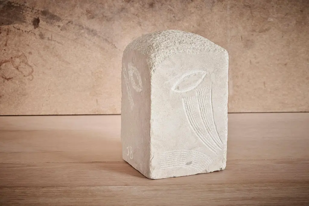Unique stone sculpture Las 4 Caras by Jean-Baptiste Van den HeedeSigned, uniqueDimensions: 16 x 16 x 27 cmMaterials: stoneJean-Baptiste Van den Heede defines himself as a cabinetmaker-designer and an artist of academic training and family tradition. He has achieved unique designs of national and international prestige and has several awards in avant-garde furniture.Born in Argentina in 1966, from an Argentine mother and a Belgian father. At 5 years of age he and his family moved to Belgium.To train as a wood professional, he first studied 4 years of carpentry. Then he continued training in cabinetmaking and carving for 5 more years. Always in search of contributing something more to his trade, he studied furniture and antique design, culminating this with the study of Sculpture at the Royal Academies of Fine Arts in Liège (Belgium) and graduating with honors.Work the stone, the wood and experience the forge. From the beginning it is directed towards a search for signs, abstract writings and unrealistic figures in analogy with other “Primitive” cultures. He taught drawing and sculpture in Brussels at the private school “la main et l´ esprit” As well as summer courses in Liege (Belgium) “les ateliers d´art contemporain”.In 1995 he went to Barcelona where he taught and investigated the reliefs of different supports such as trees, floors, and especially sewer covers.He searched again analogies between current art and Prehistoric, African art, etc.Participated in several exhibitions both at the artistic level and avant-garde design.In 2002, he moved down to Albacete and then to a town in the province where he still works.It is defined as “a search engine without haste or guidelines.” He says: “I only work when I feel a strong and positive inspiration invade me, an energy that I capture from matter, from the air and that I return doing the work until I feel a connection with it.”Private workshop of contemporary art in Letur (Albacete) until 2009.He currently works in his workshop-studio in the Sierra de Madrid (Guadalix de la Sierra) following his career as a cabinetmaker-designer and artist while teaching his trade to students interested in wood.