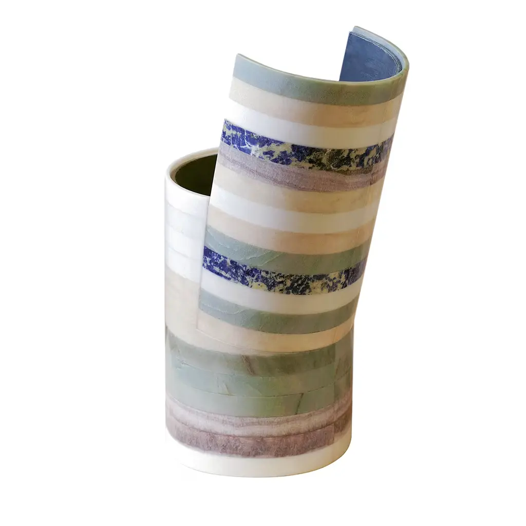 Unique TATEMONO_02 sculpture vase by Emmanuelle RouleUnique pieceDimensions: W 20 x H 35 cmMaterials: Earthenware, stonewareUnique piece hand-modelled in beige earthenware and white stoneware building. Rough slabs with normal apparent micro-cracks.Creative studio founded in 2007 in Paris.Curious about new projects and encounters, the studio is characterised by a multidisciplinary dimension : design, art direction, space and contemporary art.Experimentation, research and fun."I work through research and experimentation with clay material. I have a specific approach to design and in the act of making, through multidisciplinary thoughtand using an empirical method whereby the material and its intrinsic properties (as well as the process of transformation) hold a central place in its conception.Working with clay raises the question of a perpetual back and forth between an ancestral material, an inherited savoir-faire, that has been transmitted from the past and its inscription in the contemporary creation as a material of multiple uses, with a strong environmental and sustainable dimension.On the border between crafts and contemporary art, its objects, sculptures and installations have a strong architectural dimension and question our relationship to the environment, to the territory and to the environment."