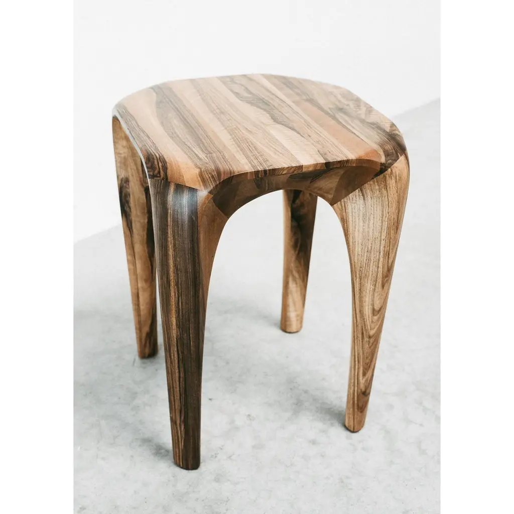 Unique Walnut Spline Tabouret - Handmade And Signed By Maxime Goléo