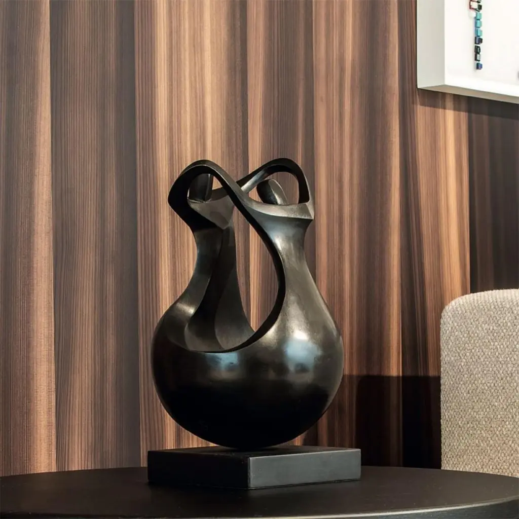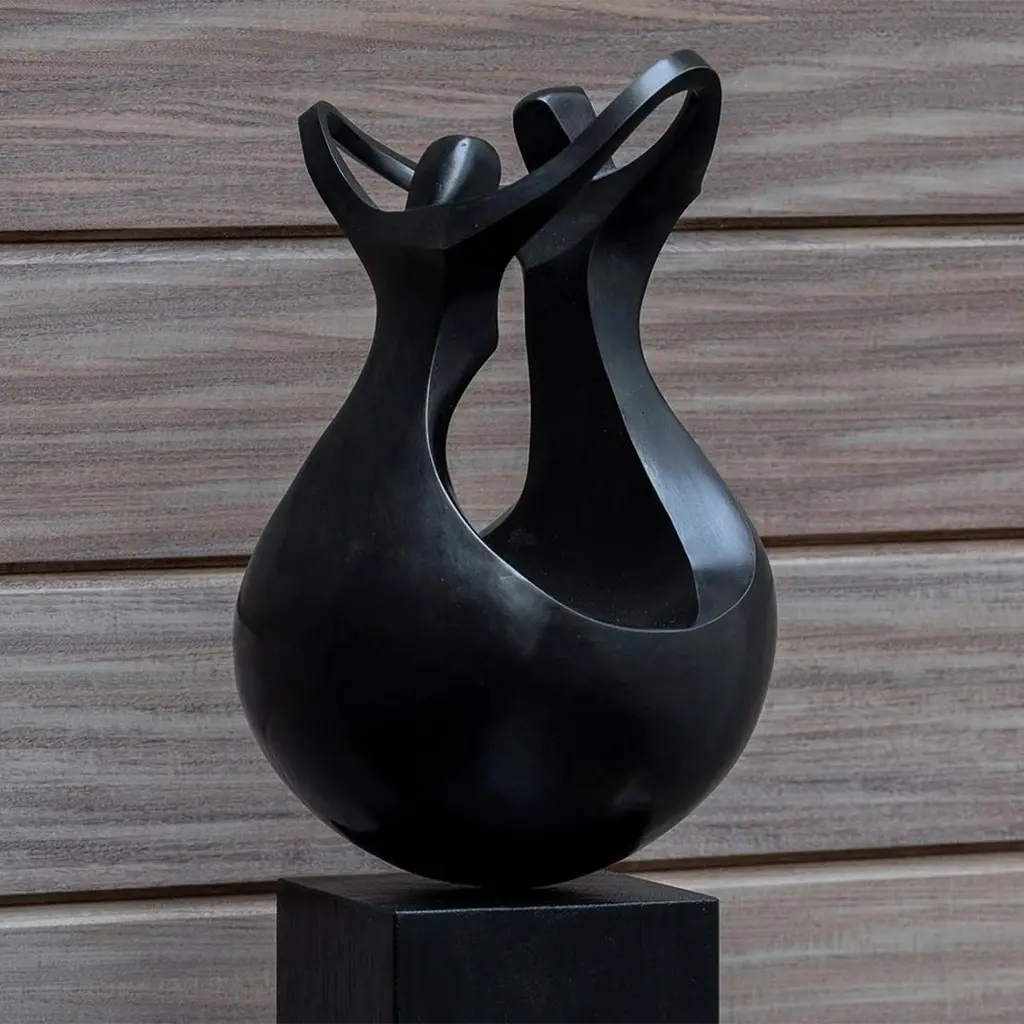Sculpture unity bronze in solid patinated bronze onblack oak base (included). Lost wax bronze technique.Base: L 12 x D 12 x H 18cm.
