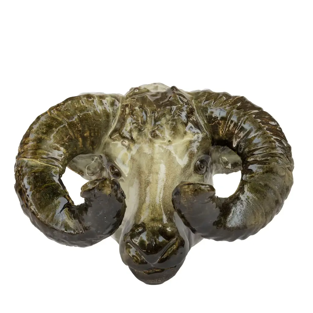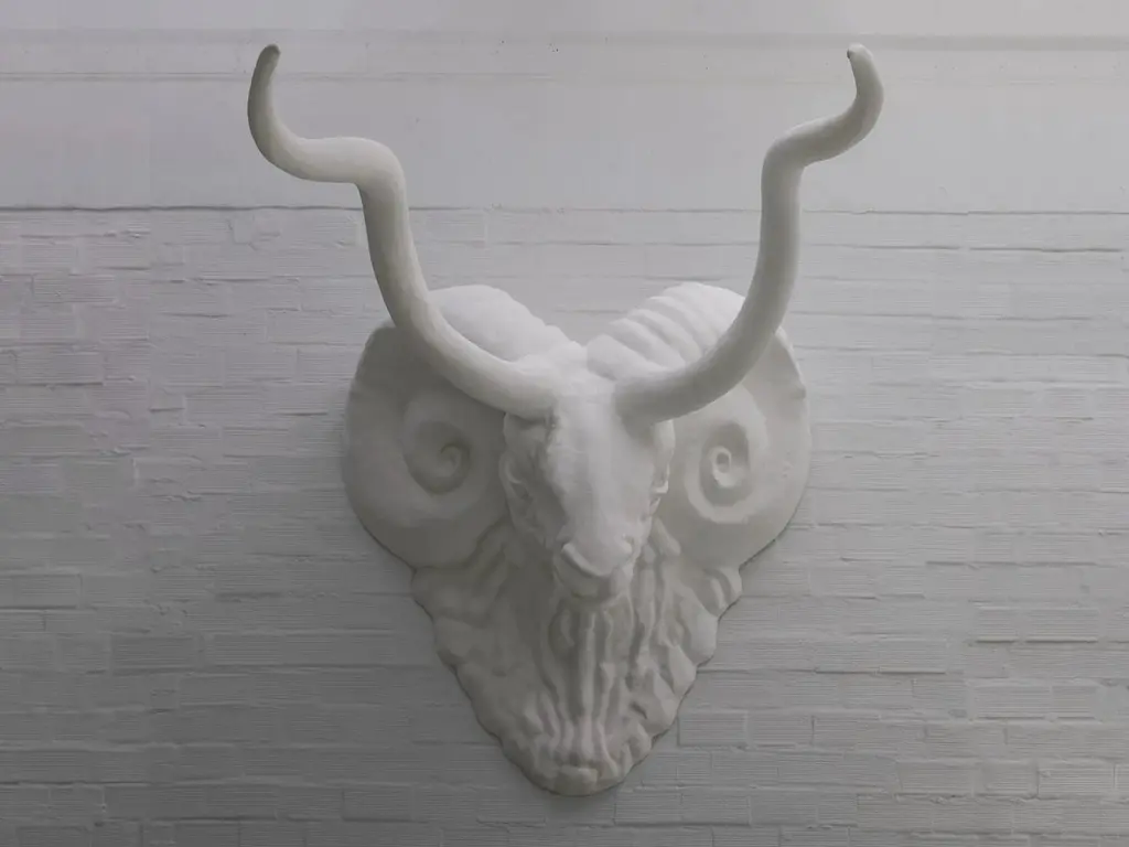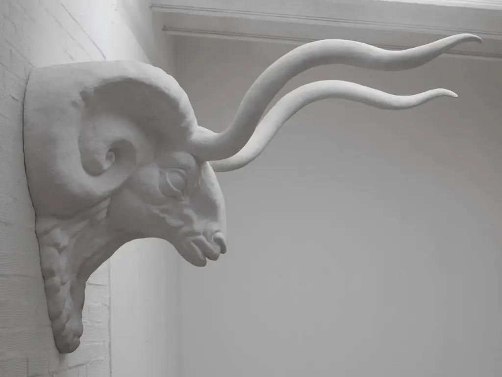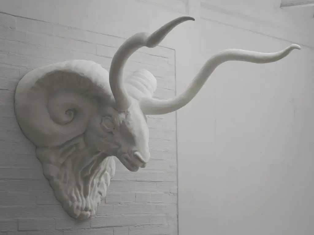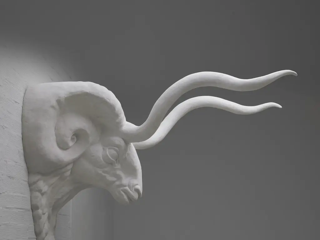Uno sculpture by ImperfettolabLimited editionDimensions: 176 x 240 x H 180Materials: fiberglassA ram, symbol of genesis and rebirth, seems to contemplate the room from its privileged position, attracting all eyes to itself. A sculptural element with a decidedly imposing size and powerful expressiveness, which awakens the wall, communicating strength and personality to the surrounding space.In limited edition, certified and numbered.Imperfetto LabWho we are ? We are a family.Verter Turroni, Emanuela Ravelli and our children Elia, Margherita and Eusebio.All together, we are separate parts and their expansion.The laboratory is in the care of Verter.From the sketch on paper he mixes materials, shapes and colours to the definition of the object.His intuitive and visionary research is performed with the complicity, recognition and practical support of his brother Erich.Emanuela is the voice of a vivid and silent work.She connects Imperfettolab with the other and with the rest of the world, respecting its nature and identity.She watches over its wholeness and authenticity.The playful spirit is entrusted to our children.They are the ones who test our works, certify their durability, functionality and enjoyment.We believe it is their expression, after all, that validates and makes our work universal.Since 1992, our thoughts and actions have moved, grown and taken shape in the land of Romagna.Between hills of cherry and olive trees, cultivated plains and piles of recyclable steel and iron.In between, the ancient Roman road via Emilia.A contrasting and mutating landscape that reflects in our furnishing sculptures.Ours is an open space, the times of art and life seamlessly merge.
