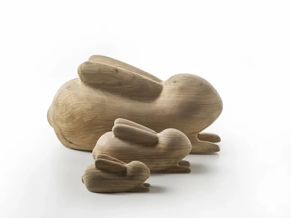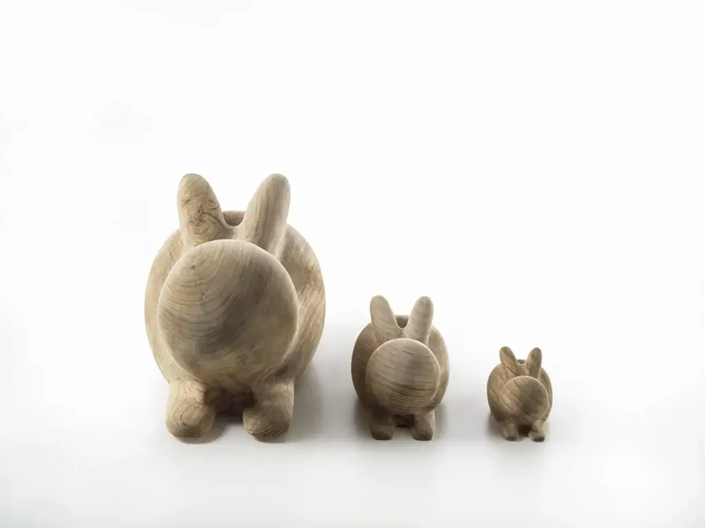 Usako is a furnishing accessory made from solid Lebanese scented cedar wood, expertly carved from a single block. Its sculptural design is inspired by an adorable rabbit. Available in three sizes: big, medium and small.