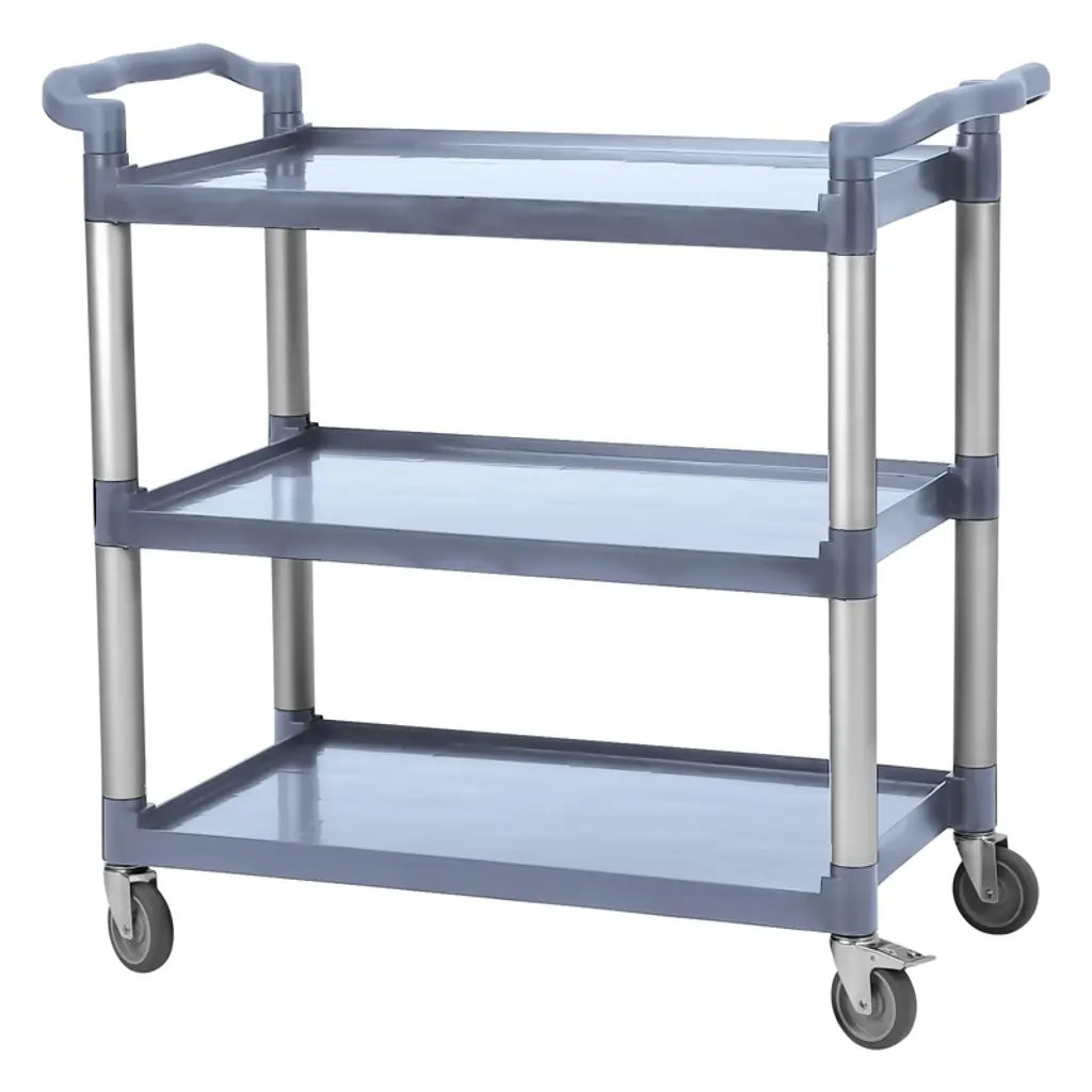 Utility Cart, Rolling Cart - 3 Tier Heavy Duty Plastic Service Cart With Swivel Wheels, 450lbs Capacity, Metal Frame & 2 Handles (Grey)