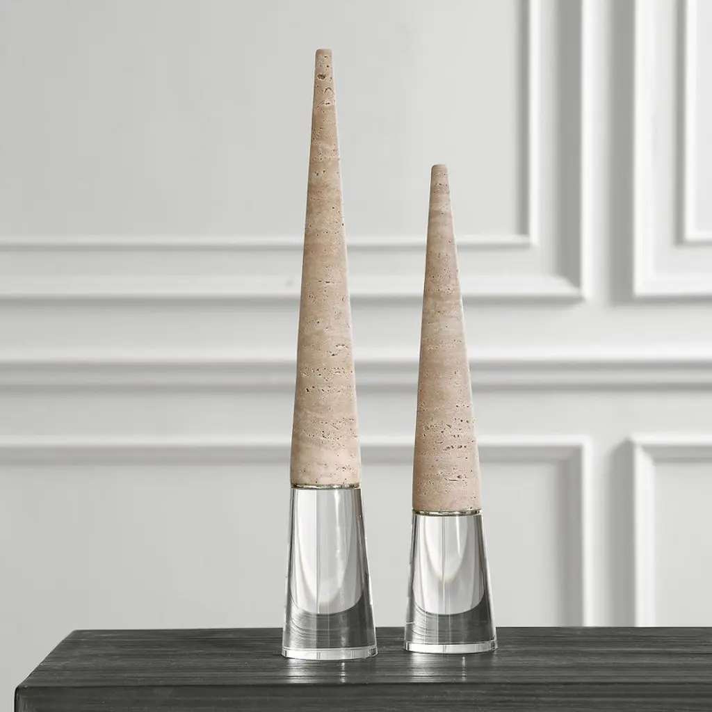 Uttermost 18169 Stoney Point Travertine & Crystal Sculptures, Set Of 2