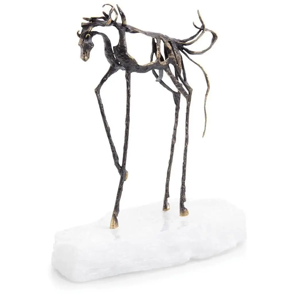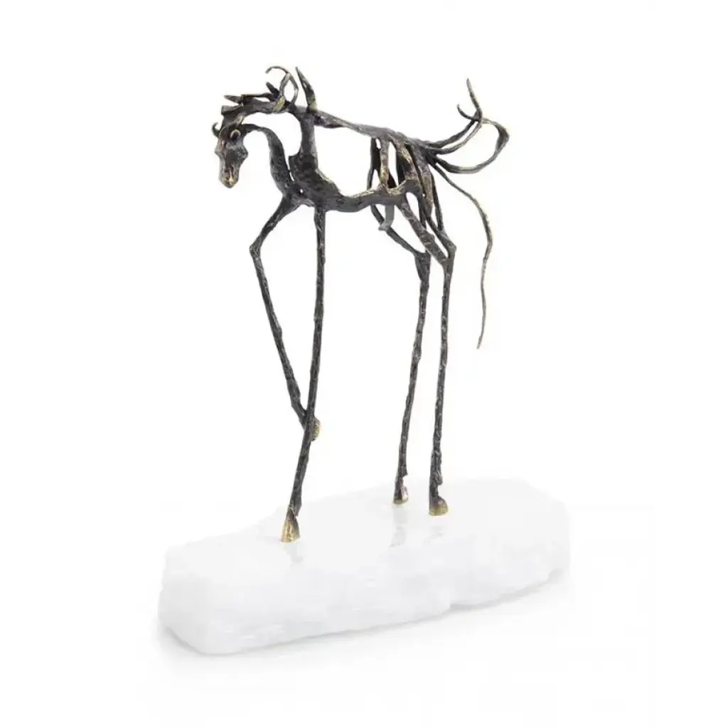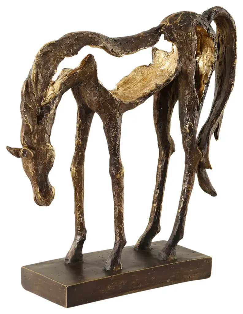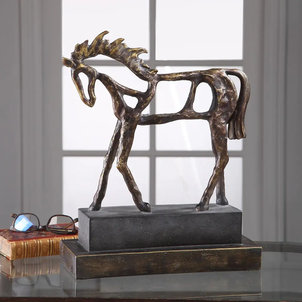 Heavily Textured Horse Sculpture Finished In A Heavily Antiqued Bronze With Dark Brown Glaze Standing On A Concrete Inspired Base.