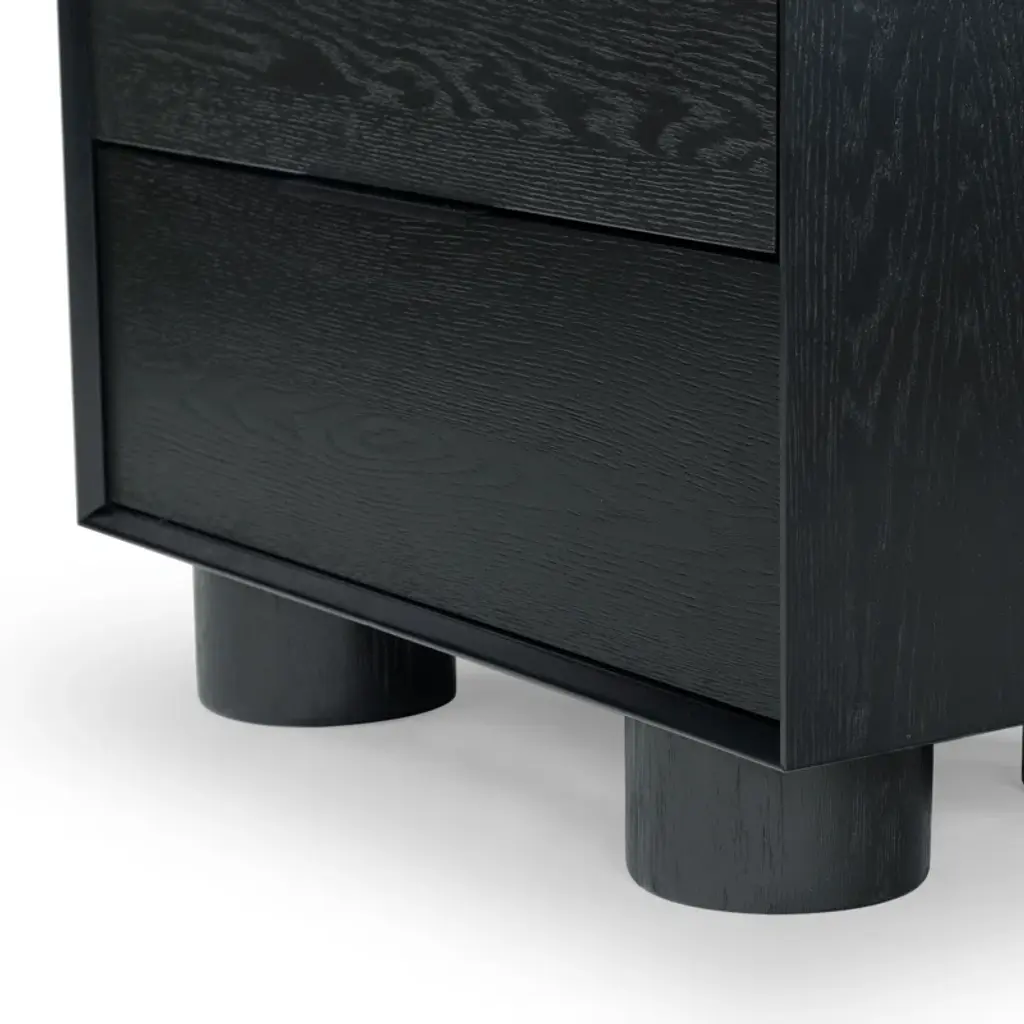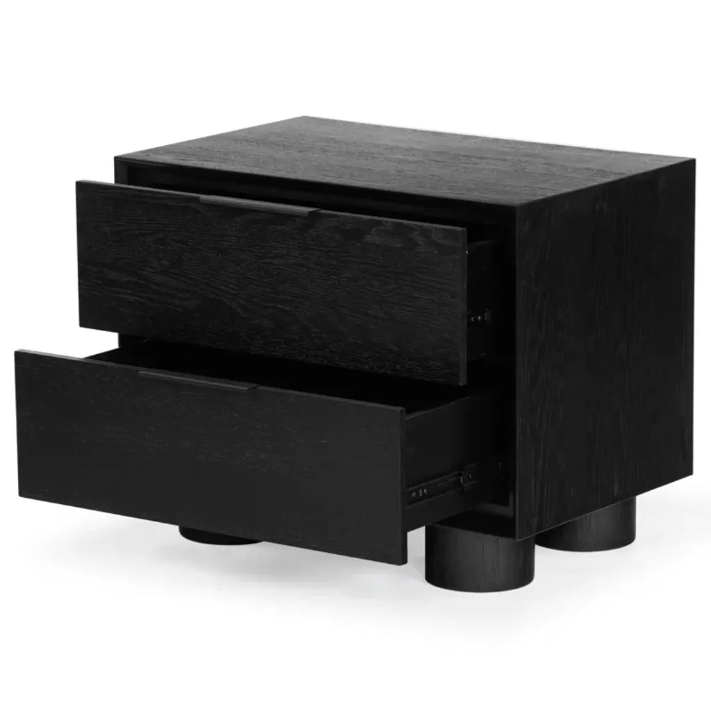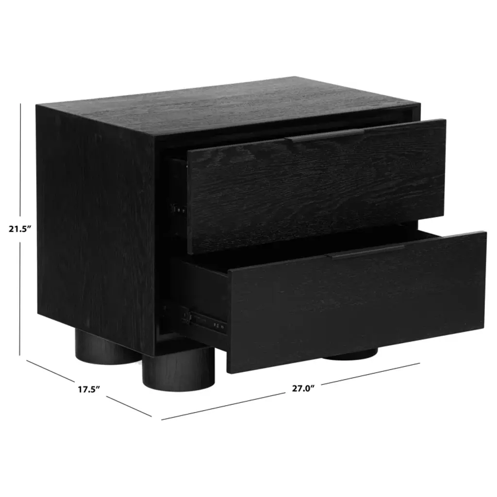 Introducing our ADDYSON WOOD 2 DRAWER NIGHTSTAND. This stable, dependable nightstand is a magnificent addition to any bedroom setup, handcrafted from SOLID RUBBER WOOD and OAK VENEER. Exuding an enticing black hue, this stunning piece adds to your room's aesthetics while lending a touch of convenience. Built with attention to detail, the design features dual spacious drawers and ample table-top space for your bedtime essentials. Each drawer features a sleek IRON handle, contributing to the overall robust and seamless design. Not just visually pleasing, its SOLID RUBBER WOOD and OAK VENEER foundation ensures strong support, while the substantial IRON metalwork emphasizes the reliable construction and the nightstand's sturdiness. Embrace the marriage of style and functionality with the ADDYSON NIGHTSTAND in BLACK, crafted with the utmost attention to design, functionality, and lasting appeal. Make an investment in the aesthetic of your bedroom that is certainly worth it. Order your ADDYSON WOOD 2 DRAWER NIGHTSTAND now and experience the amalgamation of style, durability, and practicality.