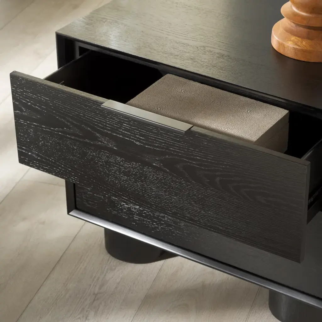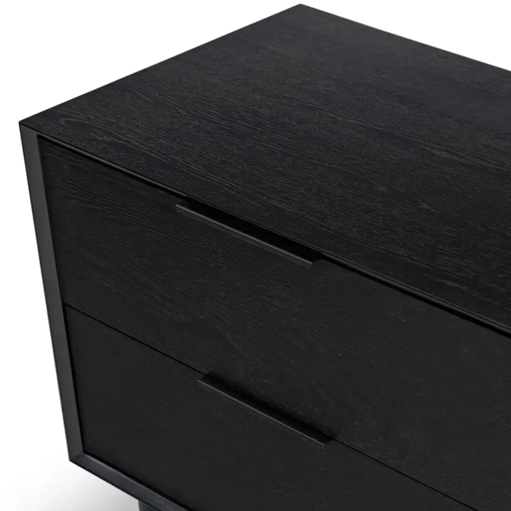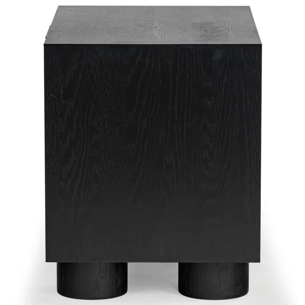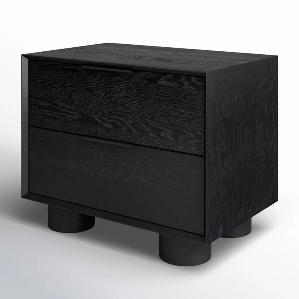 Introducing our ADDYSON WOOD 2 DRAWER NIGHTSTAND. This stable, dependable nightstand is a magnificent addition to any bedroom setup, handcrafted from SOLID RUBBER WOOD and OAK VENEER. Exuding an enticing black hue, this stunning piece adds to your room's aesthetics while lending a touch of convenience. Built with attention to detail, the design features dual spacious drawers and ample table-top space for your bedtime essentials. Each drawer features a sleek IRON handle, contributing to the overall robust and seamless design. Not just visually pleasing, its SOLID RUBBER WOOD and OAK VENEER foundation ensures strong support, while the substantial IRON metalwork emphasizes the reliable construction and the nightstand's sturdiness. Embrace the marriage of style and functionality with the ADDYSON NIGHTSTAND in BLACK, crafted with the utmost attention to design, functionality, and lasting appeal. Make an investment in the aesthetic of your bedroom that is certainly worth it. Order your ADDYSON WOOD 2 DRAWER NIGHTSTAND now and experience the amalgamation of style, durability, and practicality.