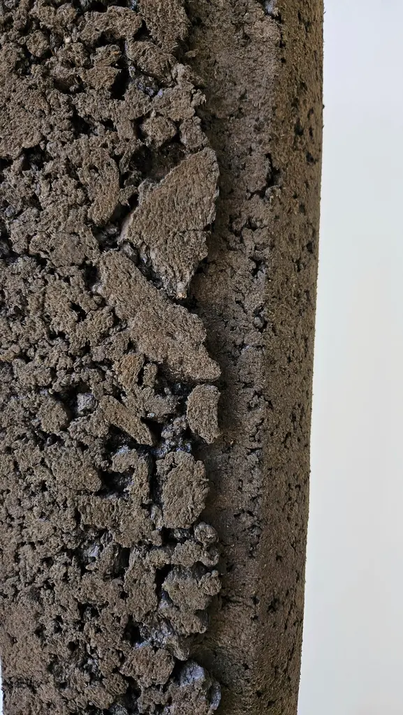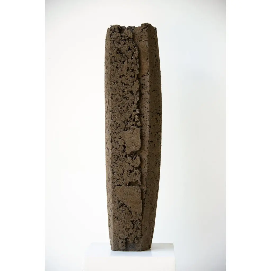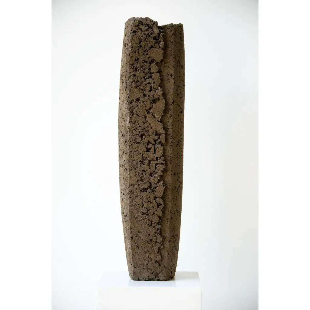 Vaso Crosta 02 Sculpture by Domingos Tótora EstúdioDimensions: W 21 x D 23 x H 90 cmMaterials: Recycled cardboard.Domingos Tótora born and raised in Maria da Fé, a city in the mountainous region of Minas Gerais, Brazil, the artist chose recycled cardboard as the source material for his work. In his studio, cardboard collected with the community’s help is broken up into small pieces and turned into a pulp, which serves as the base for his art pieces. All artworks are hand-molded, dried in the sun, and finished to perfection. In this careful and labor intensive process, the cardboard, which originated from wood, essentially is brought back full cycle by taking on a wood quality again. The beauty of his work not only manifests in the final product but in the process itself. From the artist’s philosophy and respect for the environment to his production process, everything translates Domingos’ sensitivity, awareness, and deep connections to his roots. Objects and environment make it clear that this isn’t an obsessive search for perfection. Imperfection is a constitutive part of his work.