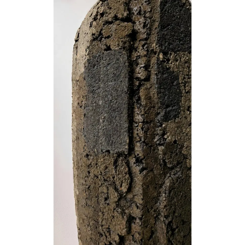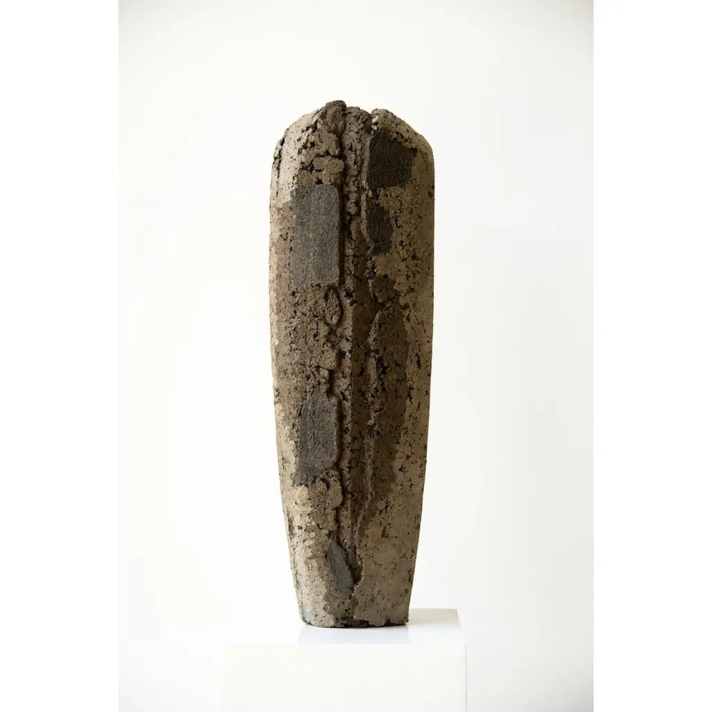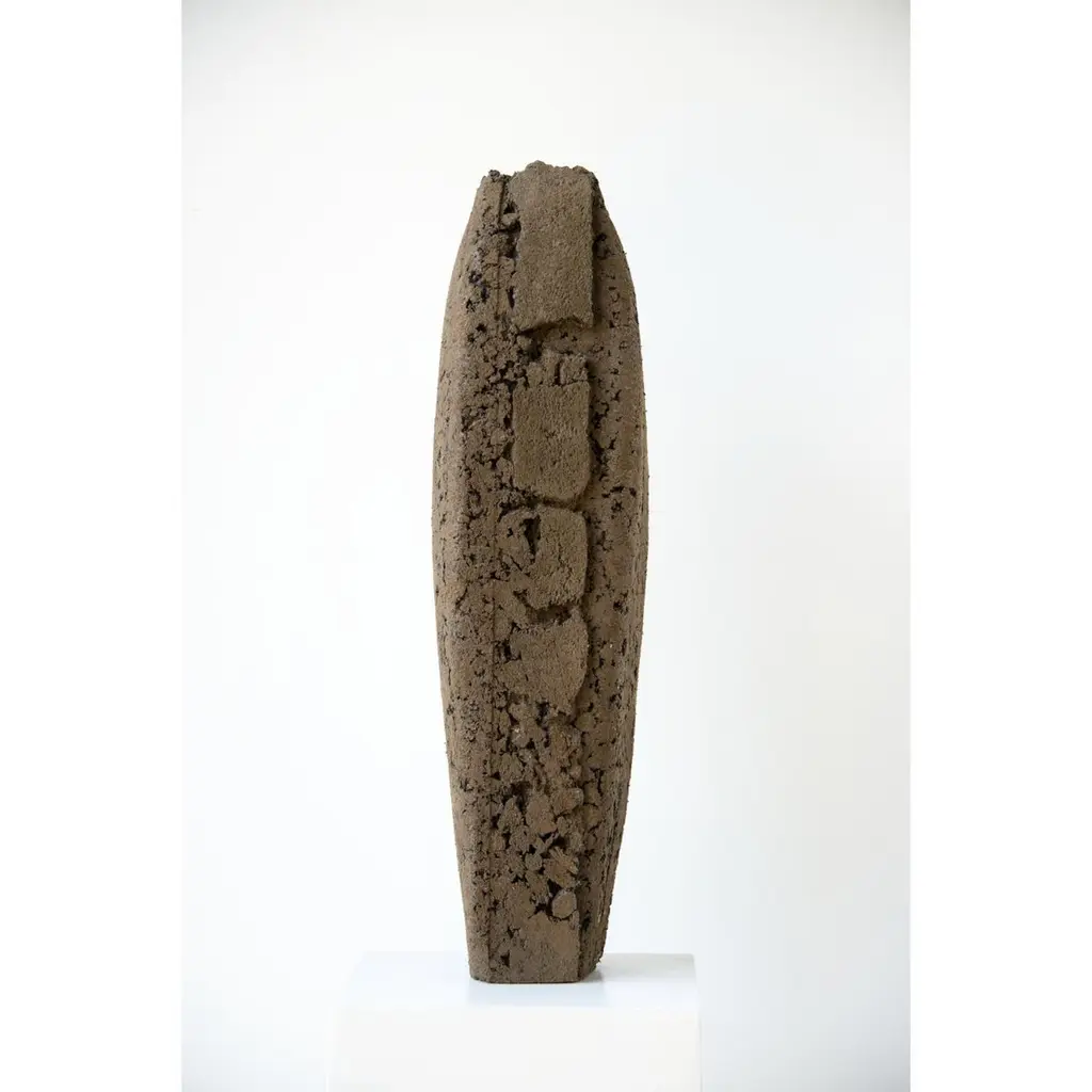 Vaso Crosta 05 Sculpture by Domingos Tótora EstúdioDimensions: W 20 x D 20 x H 82 cmMaterials: Recycled cardboard.Domingos Tótora born and raised in Maria da Fé, a city in the mountainous region of Minas Gerais, Brazil, the artist chose recycled cardboard as the source material for his work. In his studio, cardboard collected with the community’s help is broken up into small pieces and turned into a pulp, which serves as the base for his art pieces. All artworks are hand-molded, dried in the sun, and finished to perfection. In this careful and labor intensive process, the cardboard, which originated from wood, essentially is brought back full cycle by taking on a wood quality again. The beauty of his work not only manifests in the final product but in the process itself. From the artist’s philosophy and respect for the environment to his production process, everything translates Domingos’ sensitivity, awareness, and deep connections to his roots. Objects and environment make it clear that this isn’t an obsessive search for perfection. Imperfection is a constitutive part of his work.