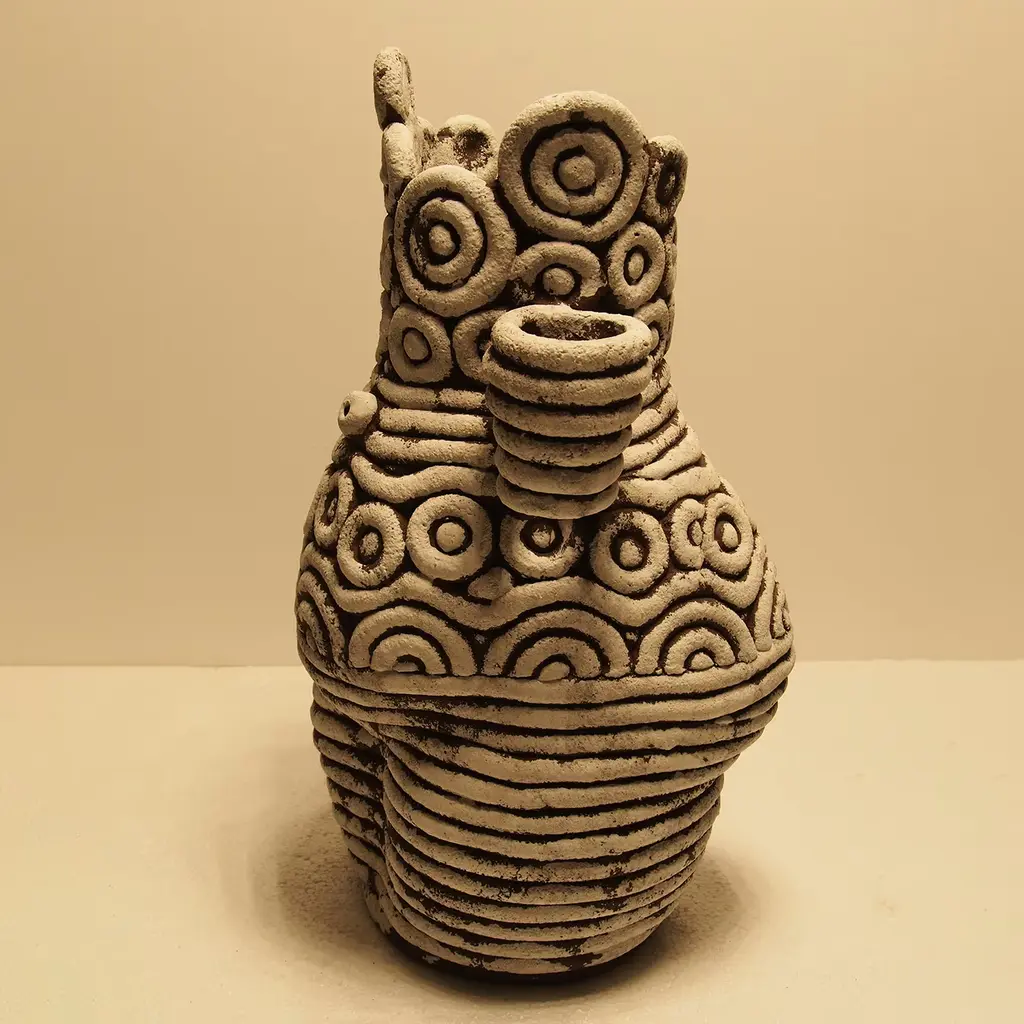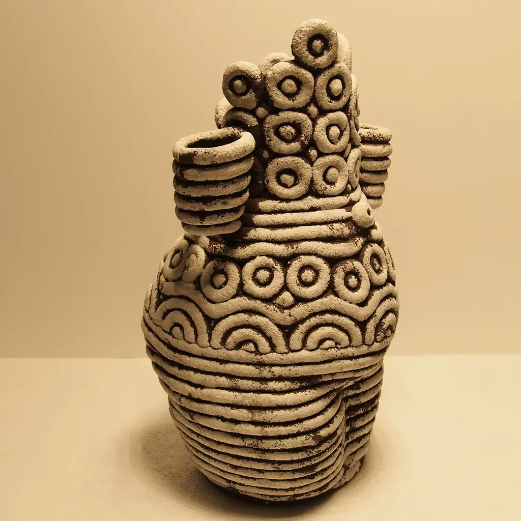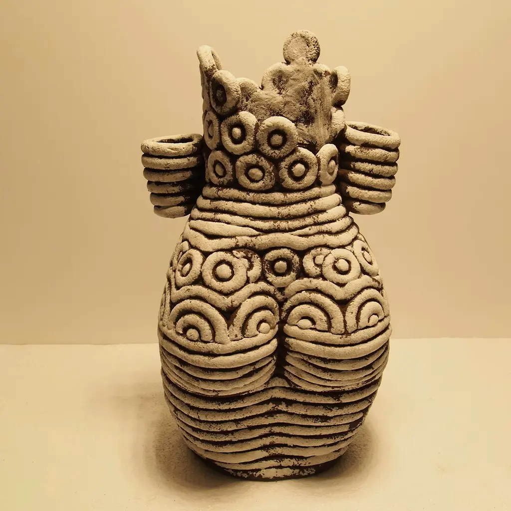 The Venere Ceramic Sculpture embodies the elegance of natural craftsmanship, manifesting a narrative through its striking form. This unique piece serves as a contemporary temple of expression, where meticulously designed clay cords evoke a sense of the sacred and the profound. Each curve and indentation tells a story of absence, reflecting a cosmic and mythological resonance. The intricate textures mimic the delicate threads of silk safeguarding the metamorphosis of a chrysalis, creating a visual dialogue that invites contemplation. Ideal for art enthusiasts and collectors alike, the Venere sculpture stands as a testament to artistic vision, merging the essence of the past with a modern aesthetic. It seamlessly transforms any space, enriching the atmosphere with its compelling presence. One-of-a-kind piece.