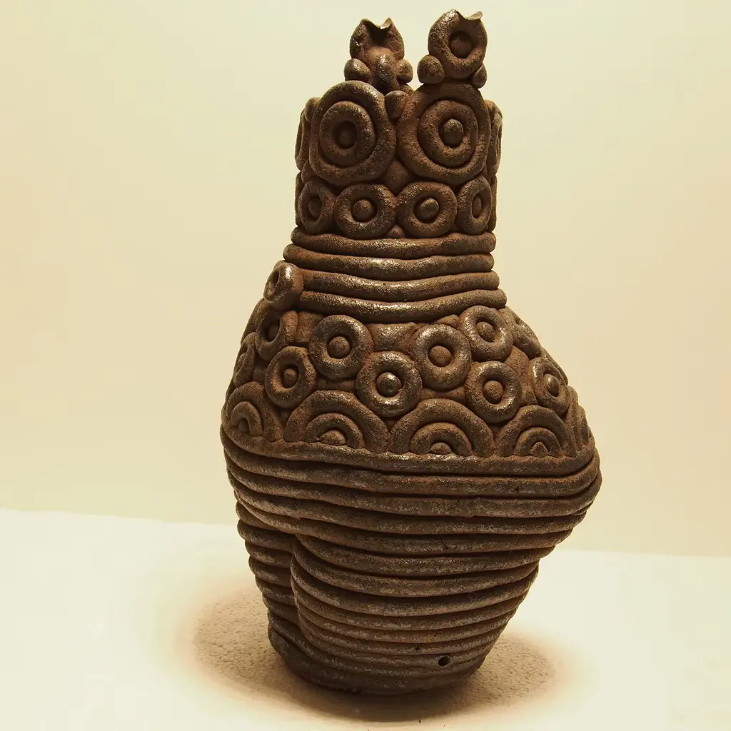 The Venere Ceramic Sculpture embodies the elegance of natural craftsmanship, manifesting a narrative through its striking form. This unique piece serves as a contemporary temple of expression, where meticulously designed clay cords evoke a sense of the sacred and the profound. Each curve and indentation tells a story of absence, reflecting a cosmic and mythological resonance. The intricate textures mimic the delicate threads of silk safeguarding the metamorphosis of a chrysalis, creating a visual dialogue that invites contemplation. Ideal for art enthusiasts and collectors alike, the Venere sculpture stands as a testament to artistic vision, merging the essence of the past with a modern aesthetic. It seamlessly transforms any space, enriching the atmosphere with its compelling presence. One-of-a-kind piece.