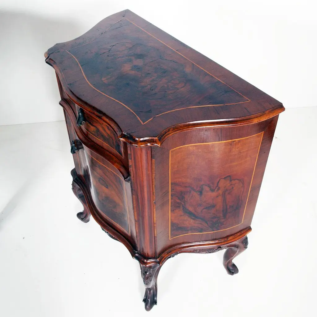 Venetian Baroque Nightstands Burl Walnut With Inlay By Testolini & Salviati