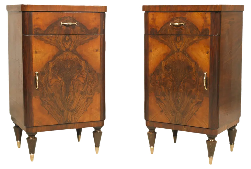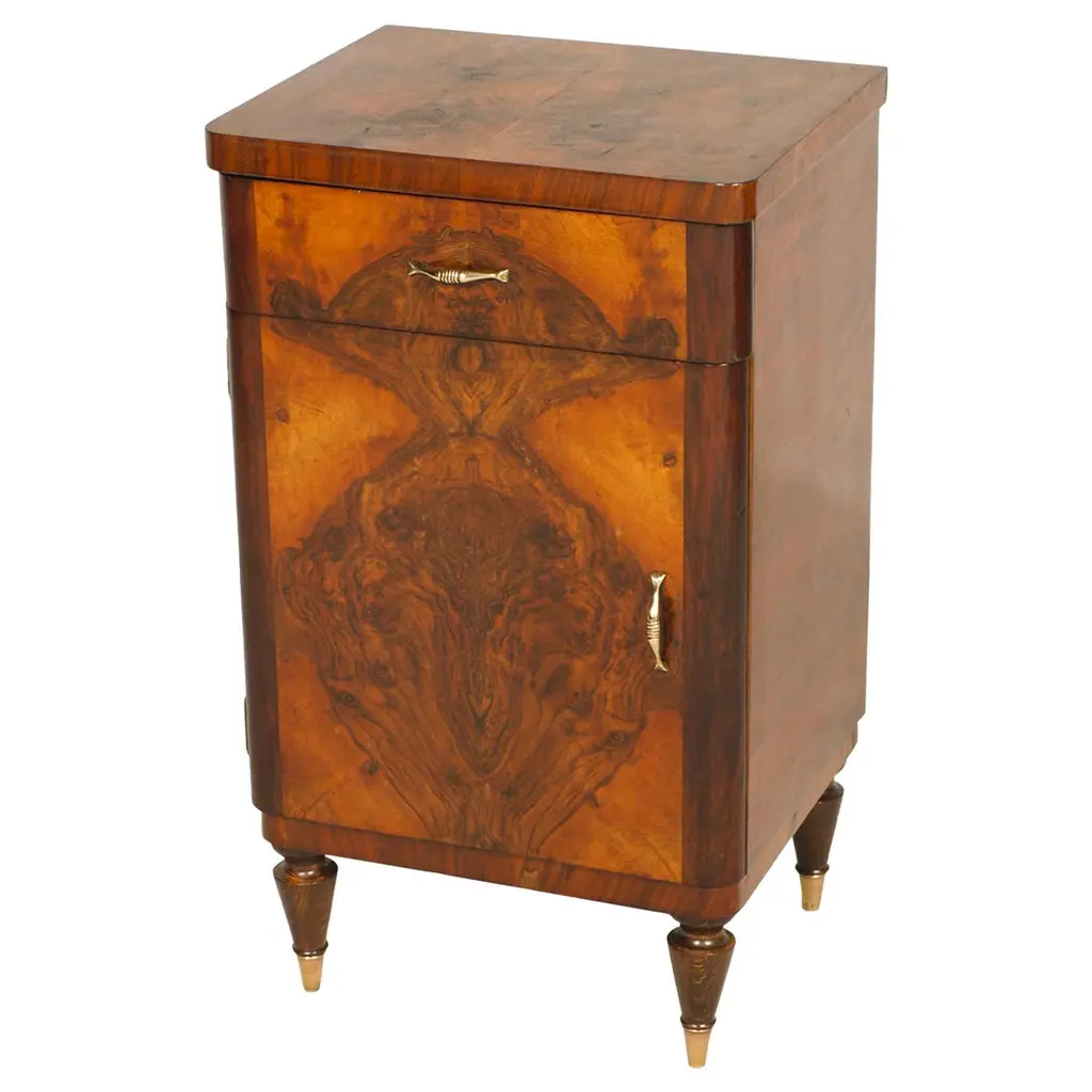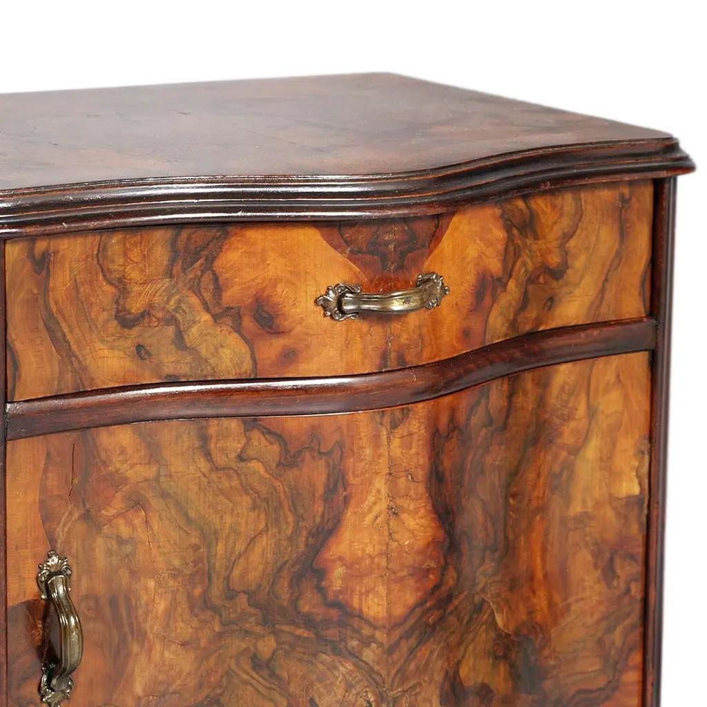 ATTENTION: The price indicated is for a single bedside table: indicate in the order whether Right or Left (right with handle on the right, left with handle on the left seen from the front)Venice Baroque bedside table by Testolini Freres, Bella Epoque period, walnut and briar with burnished bronze handles. Wax polishedTESTOLINI BROTHERS-TESTOLINI FRERESFratelli Testolini saw its birth as a carpentry-cabinetmaking company; its owners were not ordinary personalities and immediately began to introduce new fashions in furnishings. The period chosen was not among the most propitious - shortly thereafter there would be the uprisings of 1848 and the famous revolt of Manin and the Republic of San Marco -, but the Testolini were not discouraged and serenely continued their production, seizing immediately the fresh artistic eclecticism that invaded the world from the mid-19th century, starting to conceive and produce original and imaginative models.Venice increasingly became a destination for rich international tourism and the Testolini Brothers began to diversify and expand their production, covering all branches of applied arts. Towards the end of the century their production was very varied: furniture, furnishing accessories, porcelain, textiles, lace, wrought iron, sculptures in both marble and wood, mosaics, micromosaics, glass, embossed metal objects and photographic material.This production volume led them to enormously expand the number of their locations. They occupied the entire size of Palazzo Labia in San Geremia in the Cannaregio district, where their first carpentry shop had arisen; they also acquired the central portion of the old procuratie in Piazza S. Marco in the S. Marco district, two furnaces in Murano, respectively in Fondamenta dei Vetrai and in Fondamenta Cavour, Palazzo Barbarigo in the Dorsoduro district, the headquarters of S. Gregorio in the same neighborhood and finally, not to forget, the late production and sales headquarters in Florence, just to mention the most important ones.The aristocracy and the international upper class crowded their shops; among the buyers there were even the Italian sovereigns, the hereditary princes, the dukes of Aosta and the sovereigns of Portugal, who were so pleased with the purchases made that they allowed the Testolinis to affix their coats of arms on the company's advertising material.