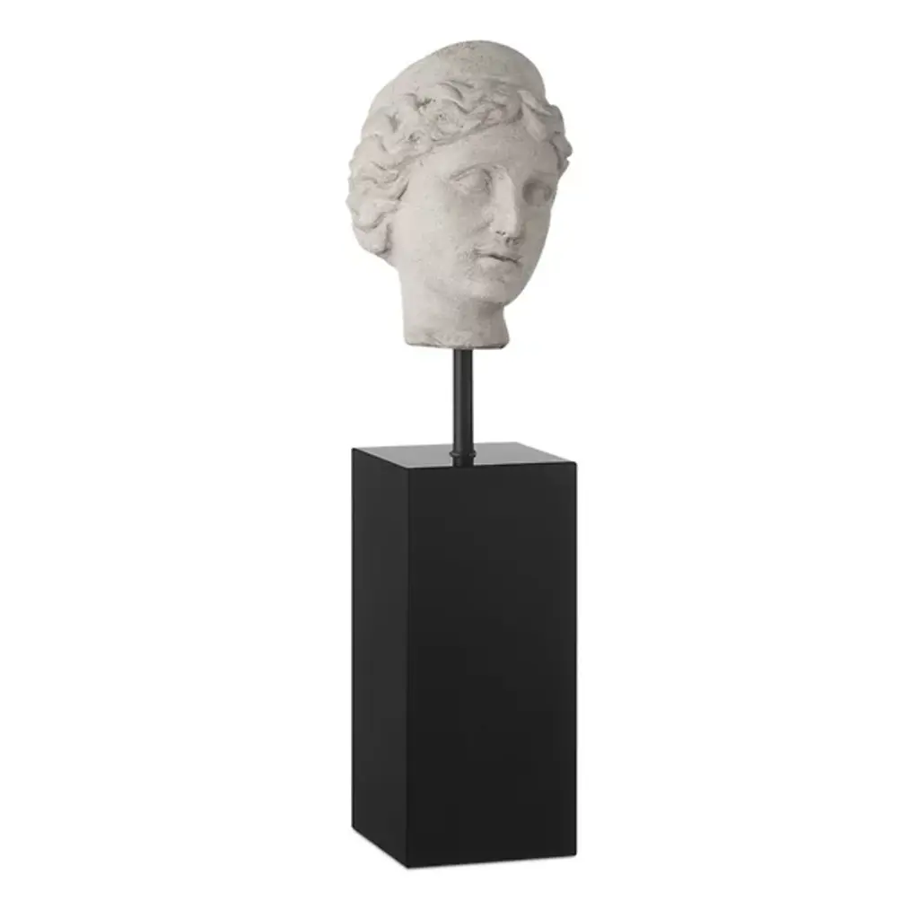 The Venus Head on Stand, Set of 2 from Currey & Company mimics ancient archaeological discoveries with remarkable authenticity. Each head appears weathered by centuries, complete with the subtle imperfections of aged artifacts. These sculptures bridge classical and modern aesthetics by resting atop crystal bases that provide sharp contrast against the aged finish. The careful detailing in the facial expressions and curled hair demonstrates exceptional craftwork that transforms composite material into seemingly historic treasures. These museum-worthy pieces add intellectual depth to bookshelves, entrances, or studies, inviting contemplation and conversation about classical beauty and artistic heritage.