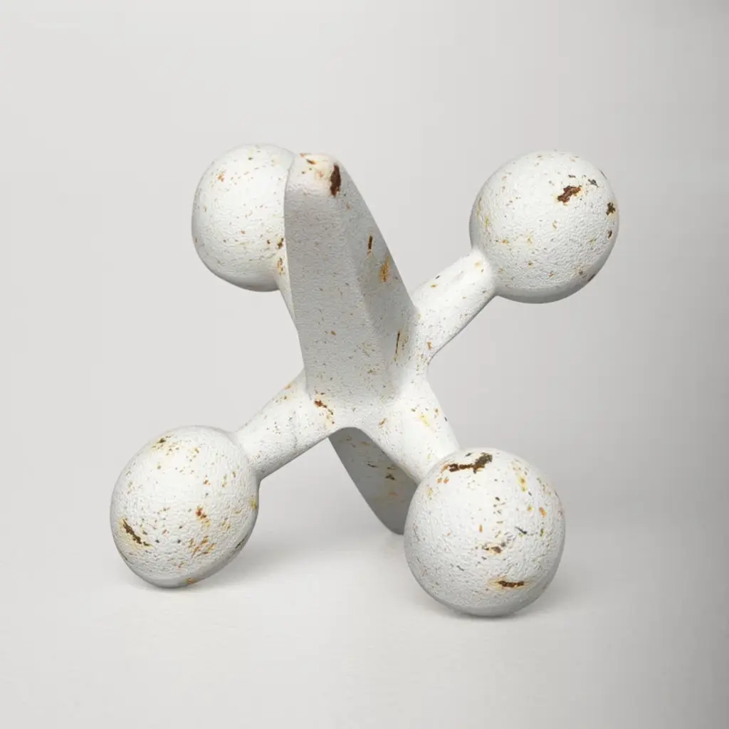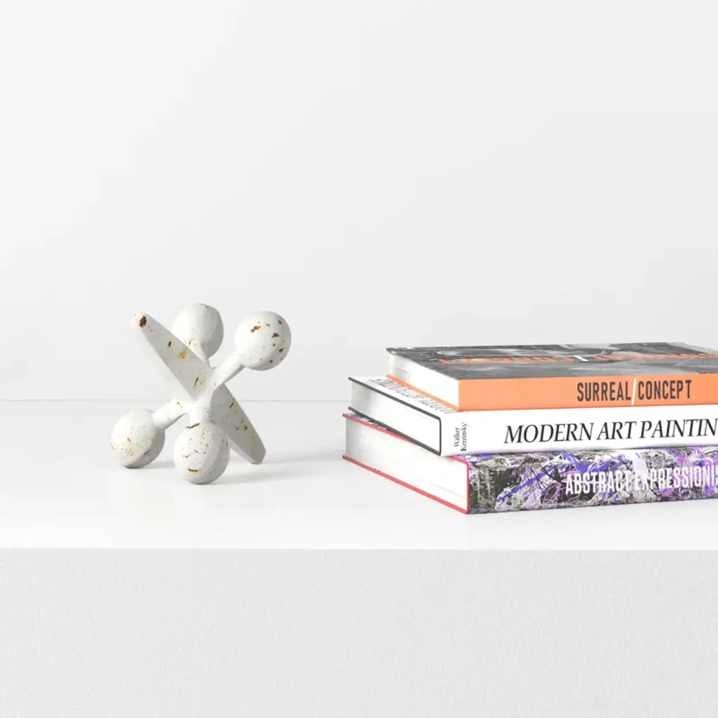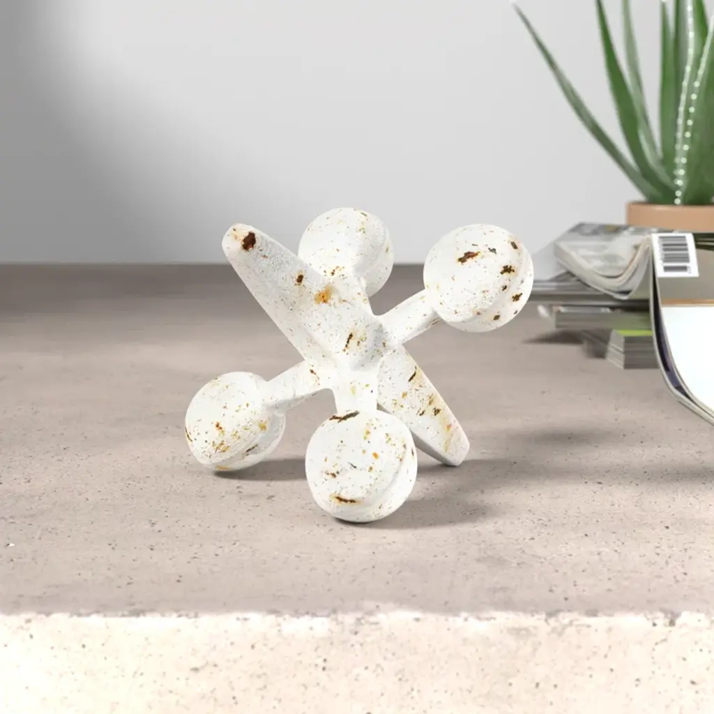 Decorative jack shelf décor adds a playful touch to any book shelf or coffee table; With iron construction and distressed finish, it is the ideal accent piece
