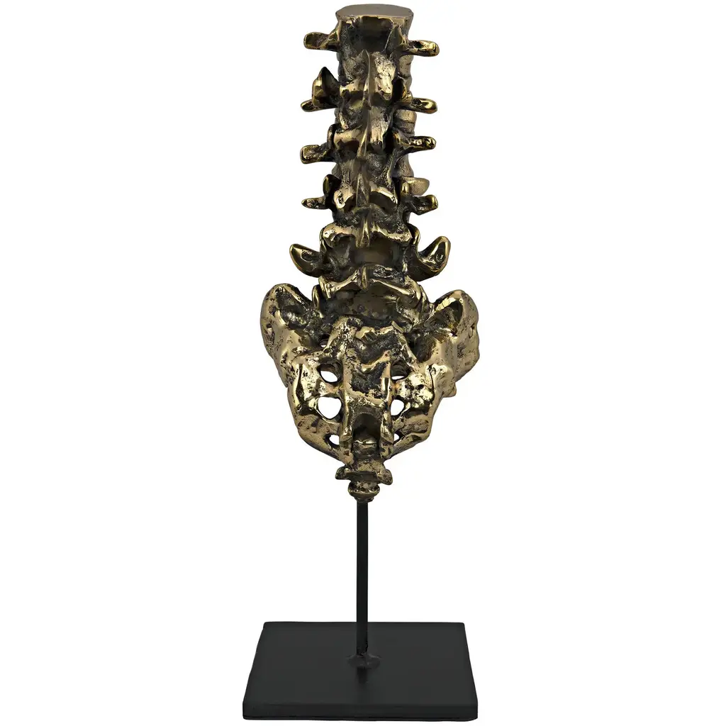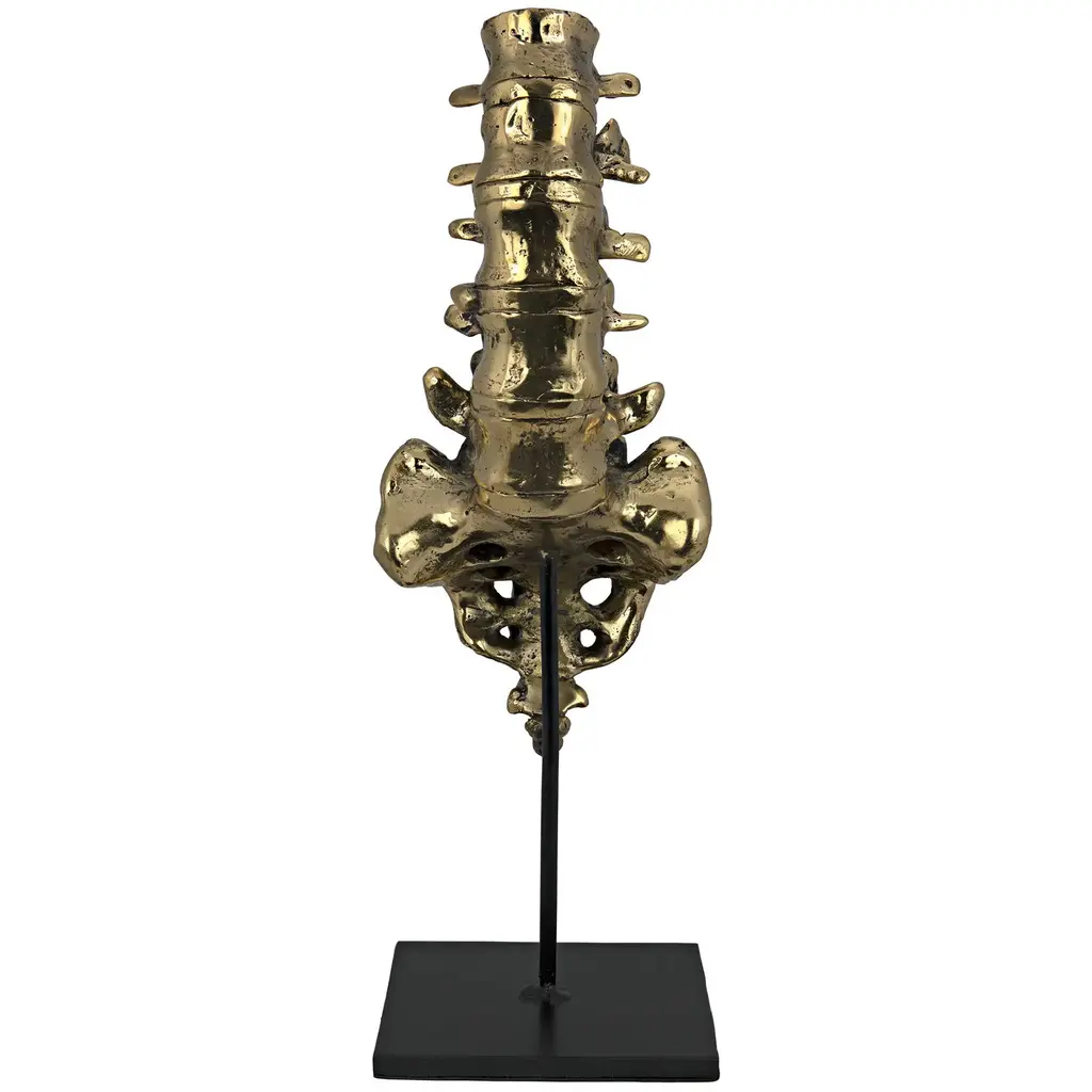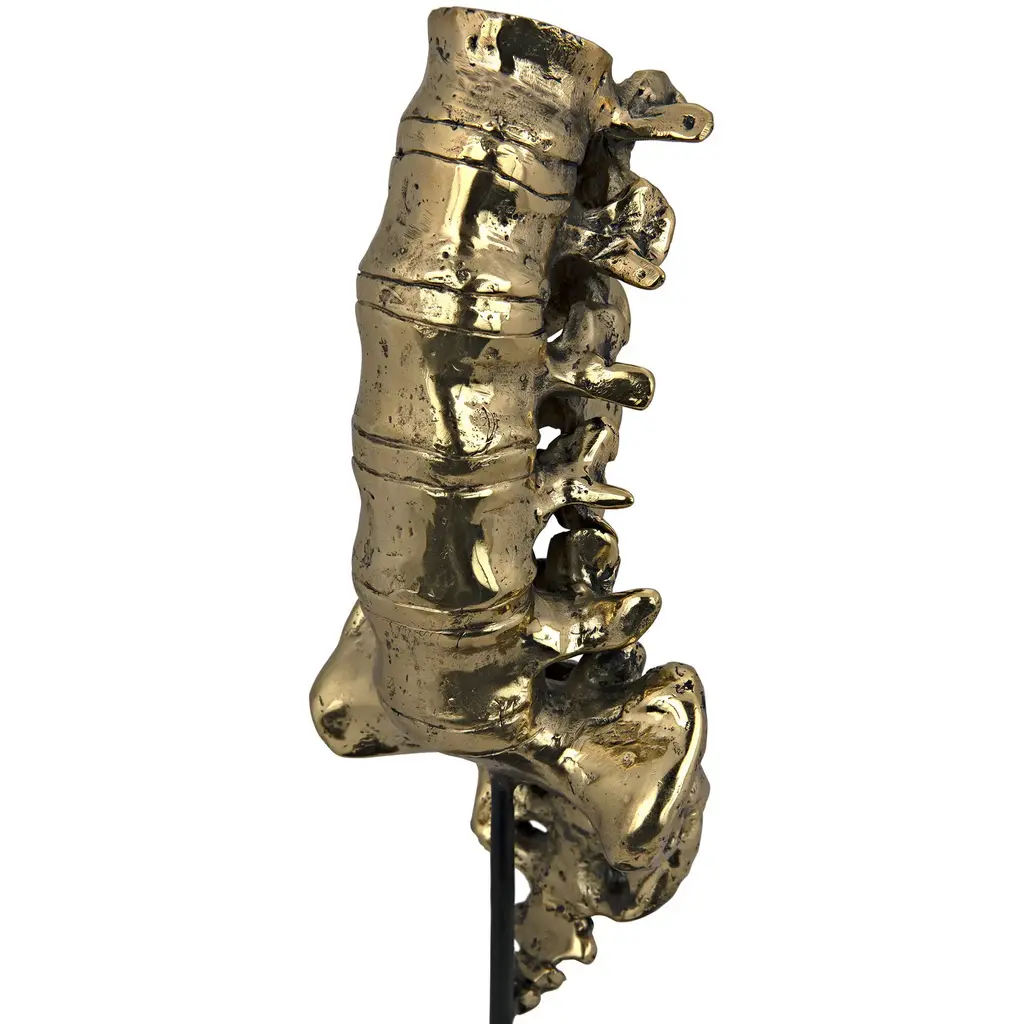 A sophisticated sculpture with the sensibility of an abstract, our detailed vertebrae is exquisitely rendered in solid brass, and includes a matte black metal display stand.
