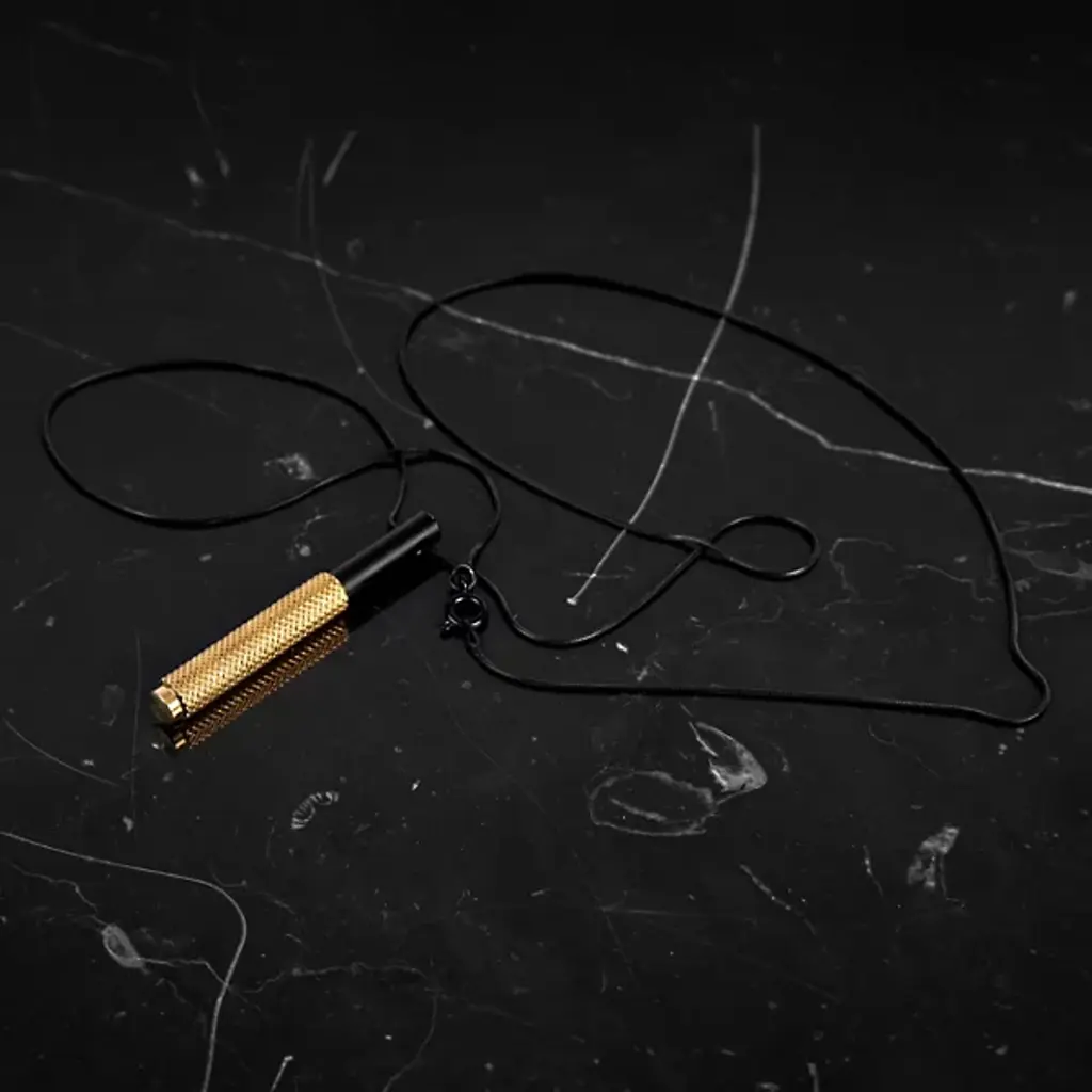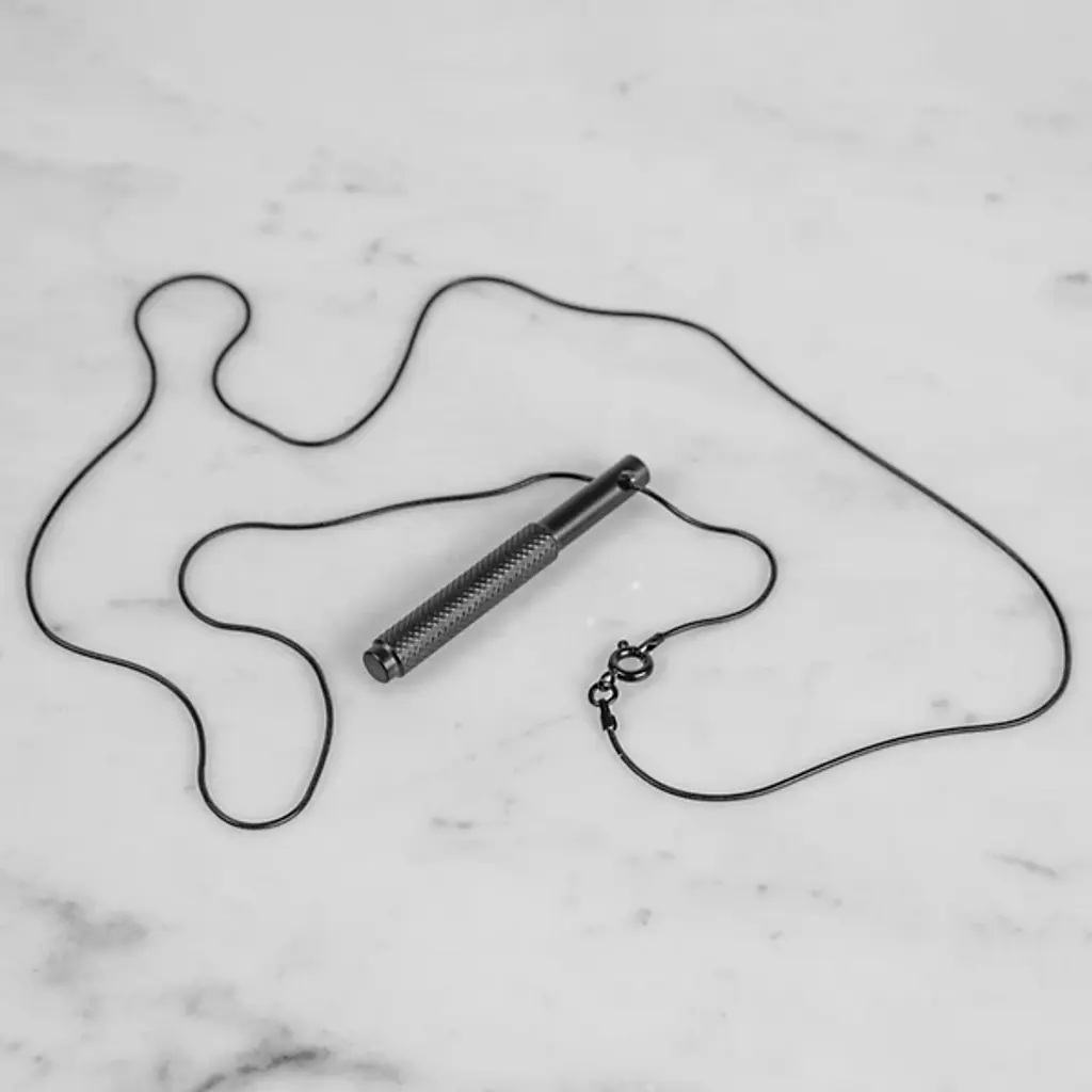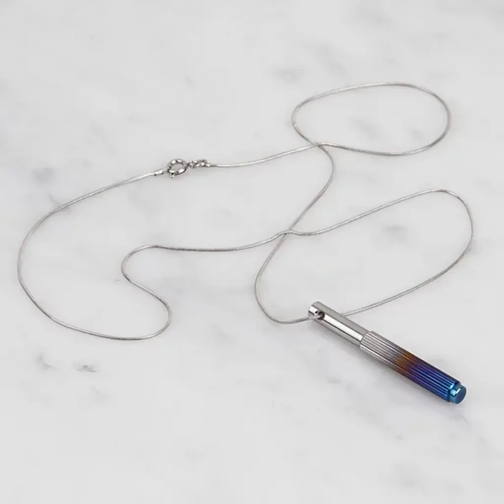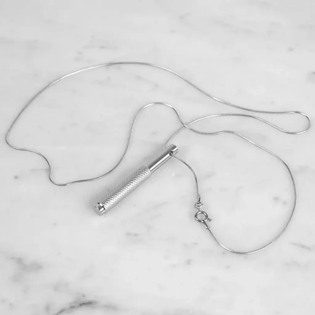 Add bold simplicity to your accessories with the Vertical Necklace by Buster + Punch. Composed of fine metal, this necklace features a slender, cylindrical pendant for an architectural, artisanal, modern look. The pendant is meticulously crafted to highlight the texture of the metal. The pendant hangs vertically from an uncluttered, streamlined look.