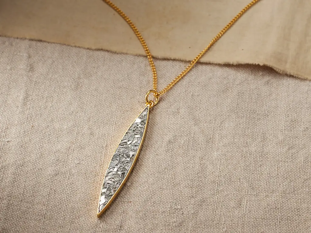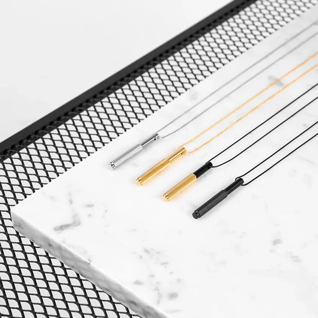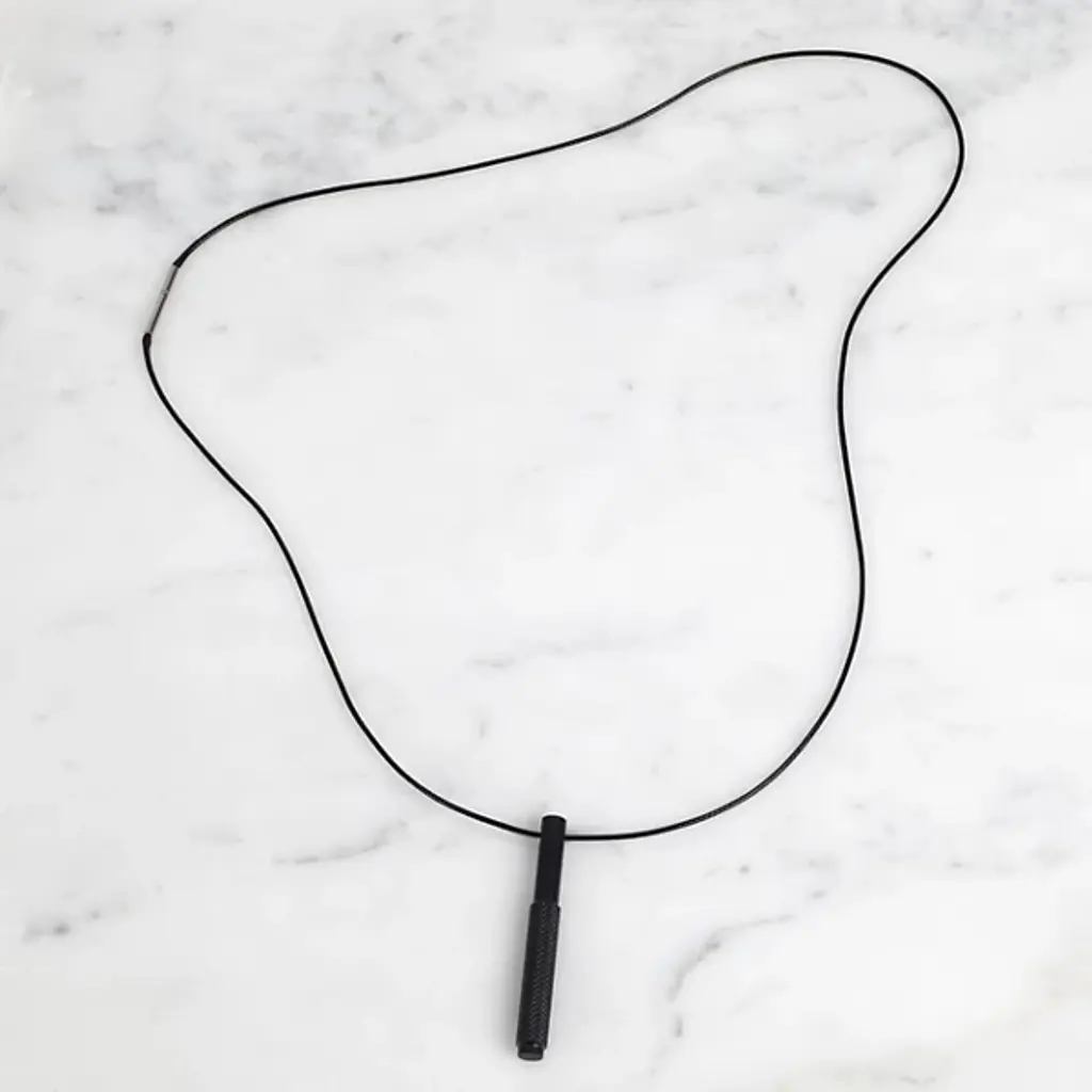 Add bold simplicity to your accessories with the Vertical Necklace by Buster + Punch. Composed of fine metal, this necklace features a slender, cylindrical pendant for an architectural, artisanal, modern look. The pendant is meticulously crafted to highlight the texture of the metal. The pendant hangs vertically from an uncluttered, streamlined look.