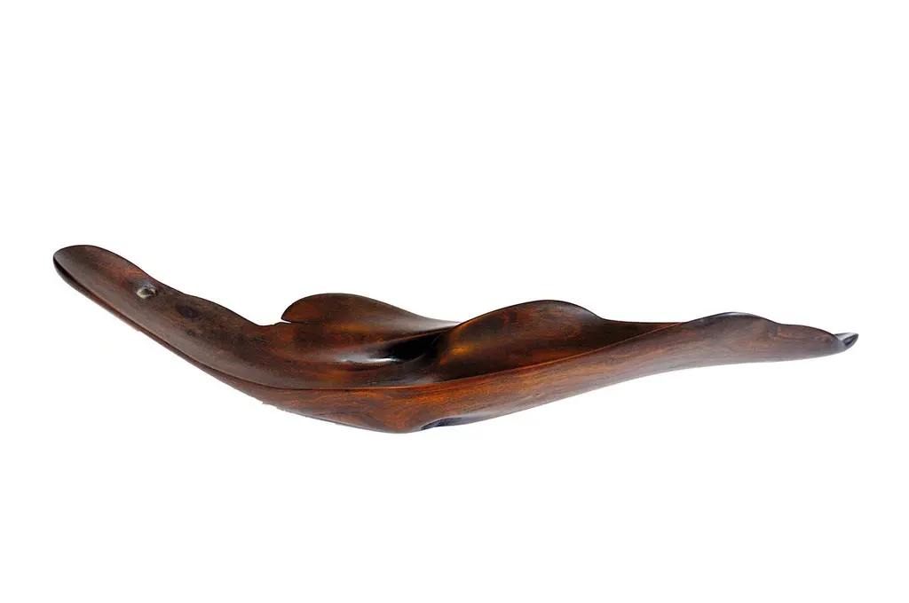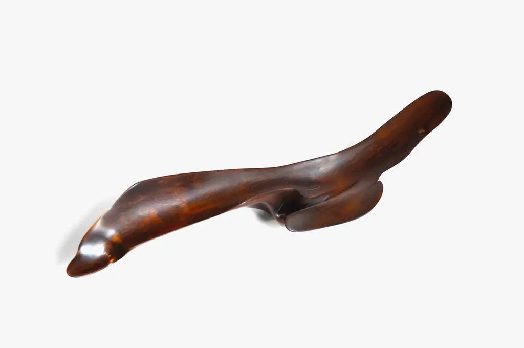 Vessel 1082 by Jörg PietschmannDimensions: D 12 x W 53 x H 11.5 cm Materials: tropical driftwoodFinish: polished oil finish.In Pietschmann’s sculptures, trees that for centuries were part of a landscape and founded in primordial forces tell stories inscribed in the memory of their fibers.The forms Jörg Pietschmann pares from ancient trees are extensive and astonishing with their physical presence, a combination of elegance and primeval nature. Pietschmann’s sculptures are monuments to the trees from which they derive.Being endowed with the ruggedness of primeval matter gives them a veritable vitality: figures that appear to have grown into the sculptural form of their own accord. But Pietschmann’s tangibly present bodies have undergone a considerable degree of metamorphosis.In order to generate these unique tree specimens, he examines the tree’s morphology and intrinsic inner map until the courses of its grain, of a curve, knots, and cracks concur with his projections. The exploratory process is accompanied by constant modification, giving at the start of each new piece no more than an intimation of the figure that will later emerge. In their completion, Pietschmann’s sculptures once more become a universal form.