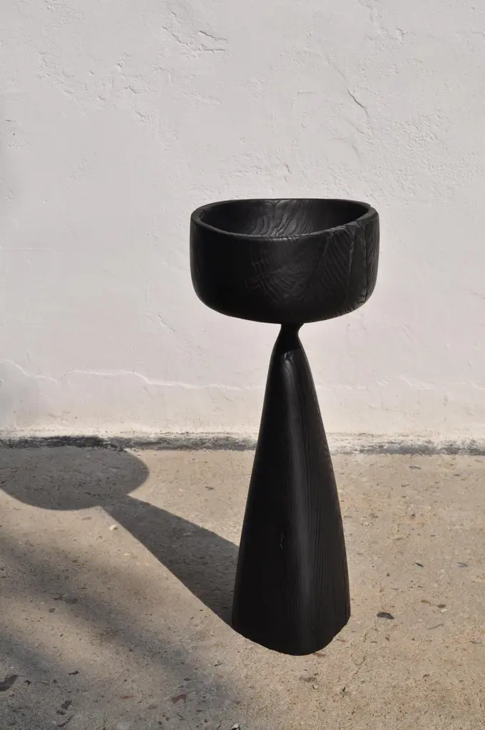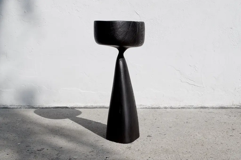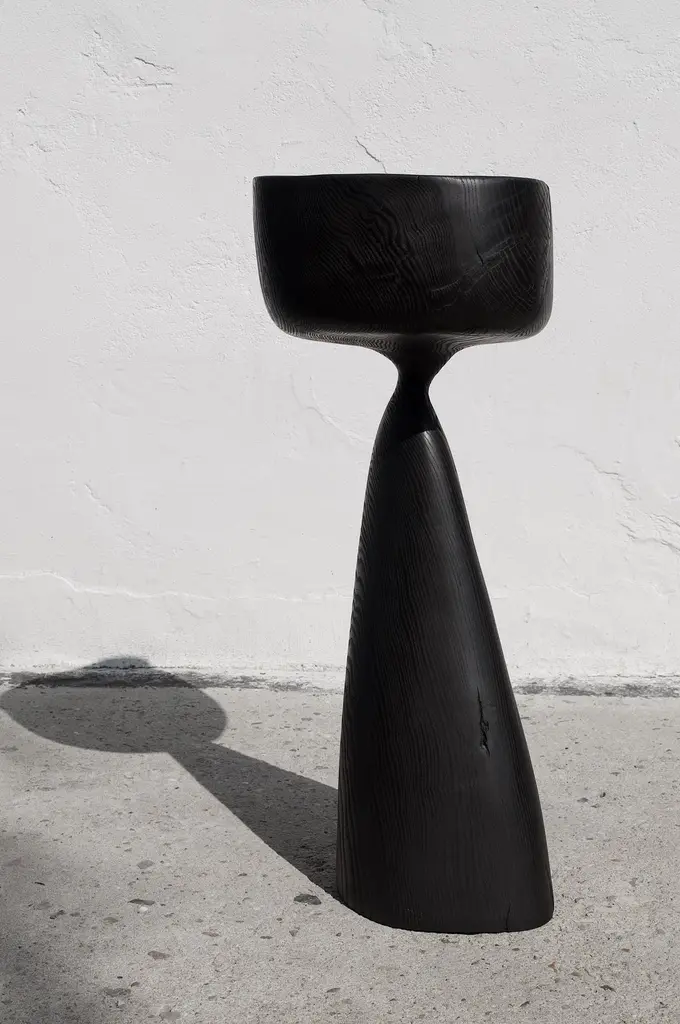 Vessel 1608 by Jörg PietschmannDimensions: D 25 x W 35 x H 85 cm Materials: ash.Finish: polished oil finish.In Pietschmann’s sculptures, trees that for centuries were part of a landscape and founded in primordial forces tell stories inscribed in the memory of their fibers.The forms Jörg Pietschmann pares from ancient trees are extensive and astonishing with their physical presence, a combination of elegance and primeval nature. Pietschmann’s sculptures are monuments to the trees from which they derive.Being endowed with the ruggedness of primeval matter gives them a veritable vitality: figures that appear to have grown into the sculptural form of their own accord. But Pietschmann’s tangibly present bodies have undergone a considerable degree of metamorphosis.In order to generate these unique tree specimens, he examines the tree’s morphology and intrinsic inner map until the courses of its grain, of a curve, knots, and cracks concur with his projections. The exploratory process is accompanied by constant modification, giving at the start of each new piece no more than an intimation of the figure that will later emerge. In their completion, Pietschmann’s sculptures once more become a universal form.