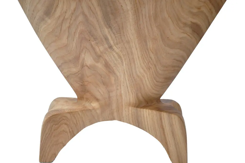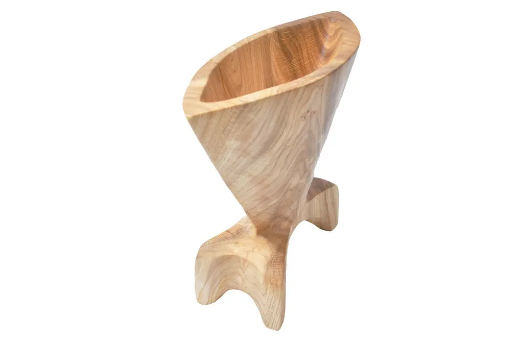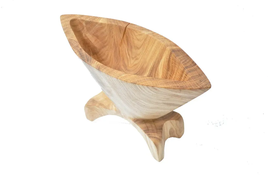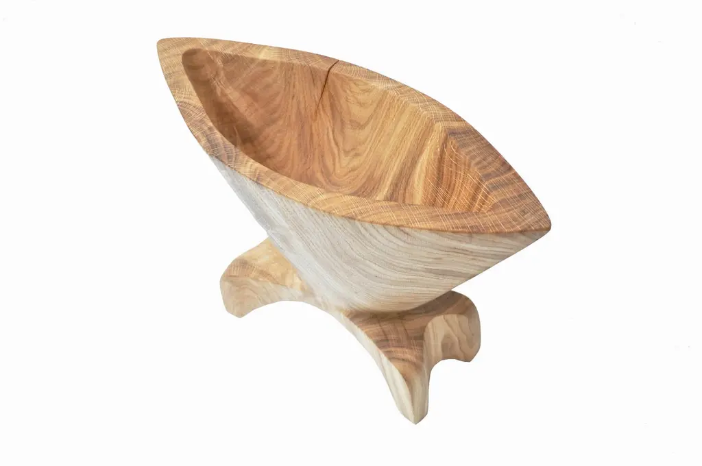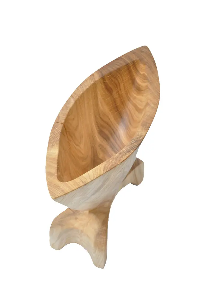 Vessel 1618 by Jörg PietschmannDimensions: D 19 x W 45 x H 37 cm Materials: oak.Finish: polished oil finish.In Pietschmann’s sculptures, trees that for centuries were part of a landscape and founded in primordial forces tell stories inscribed in the memory of their fibers.The forms Jörg Pietschmann pares from ancient trees are extensive and astonishing with their physical presence, a combination of elegance and primeval nature. Pietschmann’s sculptures are monuments to the trees from which they derive.Being endowed with the ruggedness of primeval matter gives them a veritable vitality: figures that appear to have grown into the sculptural form of their own accord. But Pietschmann’s tangibly present bodies have undergone a considerable degree of metamorphosis.In order to generate these unique tree specimens, he examines the tree’s morphology and intrinsic inner map until the courses of its grain, of a curve, knots, and cracks concur with his projections. The exploratory process is accompanied by constant modification, giving at the start of each new piece no more than an intimation of the figure that will later emerge. In their completion, Pietschmann’s sculptures once more become a universal form.