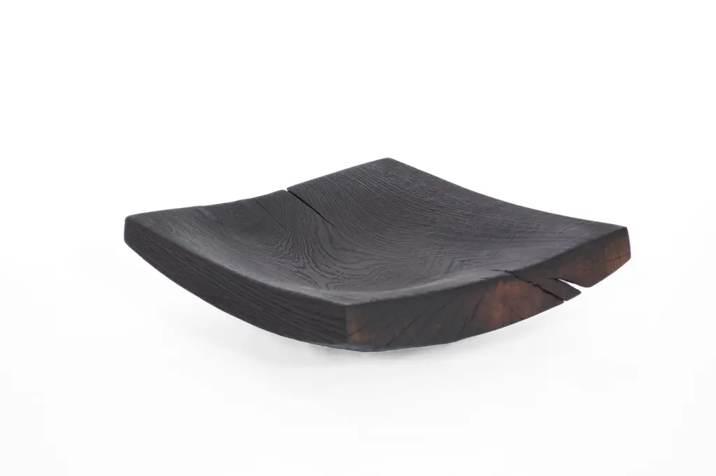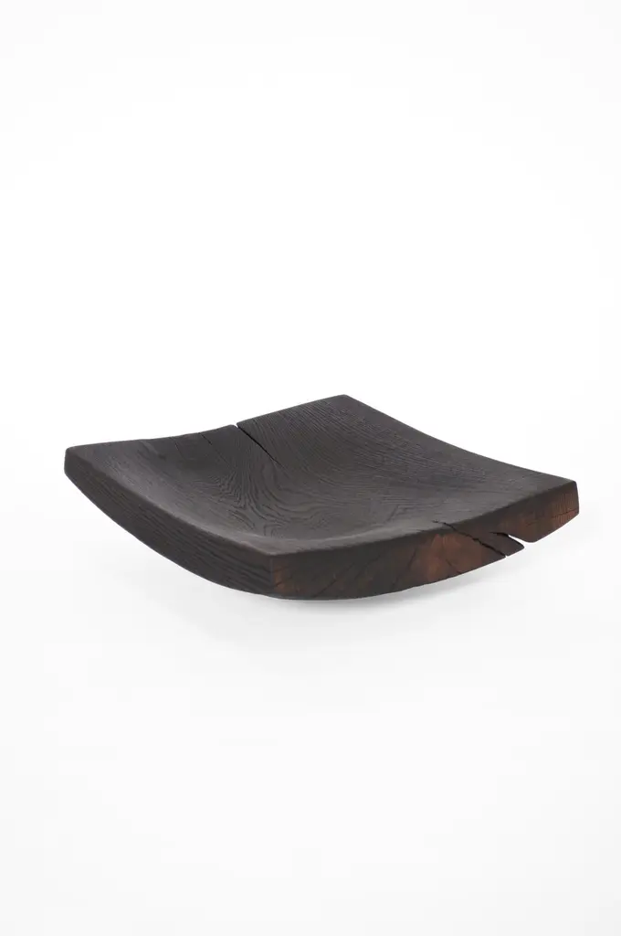 Vessel 2871 1 by Jörg PietschmannDimensions: D 32.5 x W 35 x H 11 cm Materials: ash.Technique: burnedFinish: polished oil finish.In Pietschmann’s sculptures, trees that for centuries were part of a landscape and founded in primordial forces tell stories inscribed in the memory of their fibers.The forms Jörg Pietschmann pares from ancient trees are extensive and astonishing with their physical presence, a combination of elegance and primeval nature. Pietschmann’s sculptures are monuments to the trees from which they derive.Being endowed with the ruggedness of primeval matter gives them a veritable vitality: figures that appear to have grown into the sculptural form of their own accord. But Pietschmann’s tangibly present bodies have undergone a considerable degree of metamorphosis.In order to generate these unique tree specimens, he examines the tree’s morphology and intrinsic inner map until the courses of its grain, of a curve, knots, and cracks concur with his projections. The exploratory process is accompanied by constant modification, giving at the start of each new piece no more than an intimation of the figure that will later emerge. In their completion, Pietschmann’s sculptures once more become a universal form.
