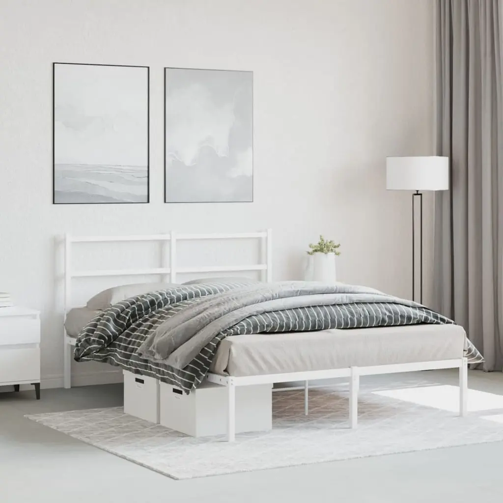 This modern full bed frame radiates elegance and style, making it the ideal centerpiece for any bedroom. Made from smooth, powder-coated steel, it not only enhances your space's look but also provides a sturdy foundation for a comfy night's sleep, perfect for adults or guests. Elegant and Timeless Design: Crafted with contemporary vibes, this bed frame showcases clean lines and a sleek structure that adds a modern flair to your bedroom. Its white finish gives a fresh, crisp appearance, blending effortlessly with various styles.Robust Powder-Coated Steel: Made from durable powder-coated steel, this bed frame is not just strong; it's built to last. The coating protects against scratches, ensuring it stays looking fabulous for years.Accommodates Full Mattresses: With dimensions of 53 x 75 in, this bed frame fits standard full mattresses perfectly, ensuring you enjoy a good night’s sleep without any mattress slips.Easy to Clean: A quick wipe with a damp cloth keeps this frame looking neat. Its design makes upkeep hassle-free, making it ideal for busy households.Indoor Use Only: Specifically built for indoor use, this frame is perfect for bedrooms and guest rooms, adding a stylish touch while ensuring comfortable nights.