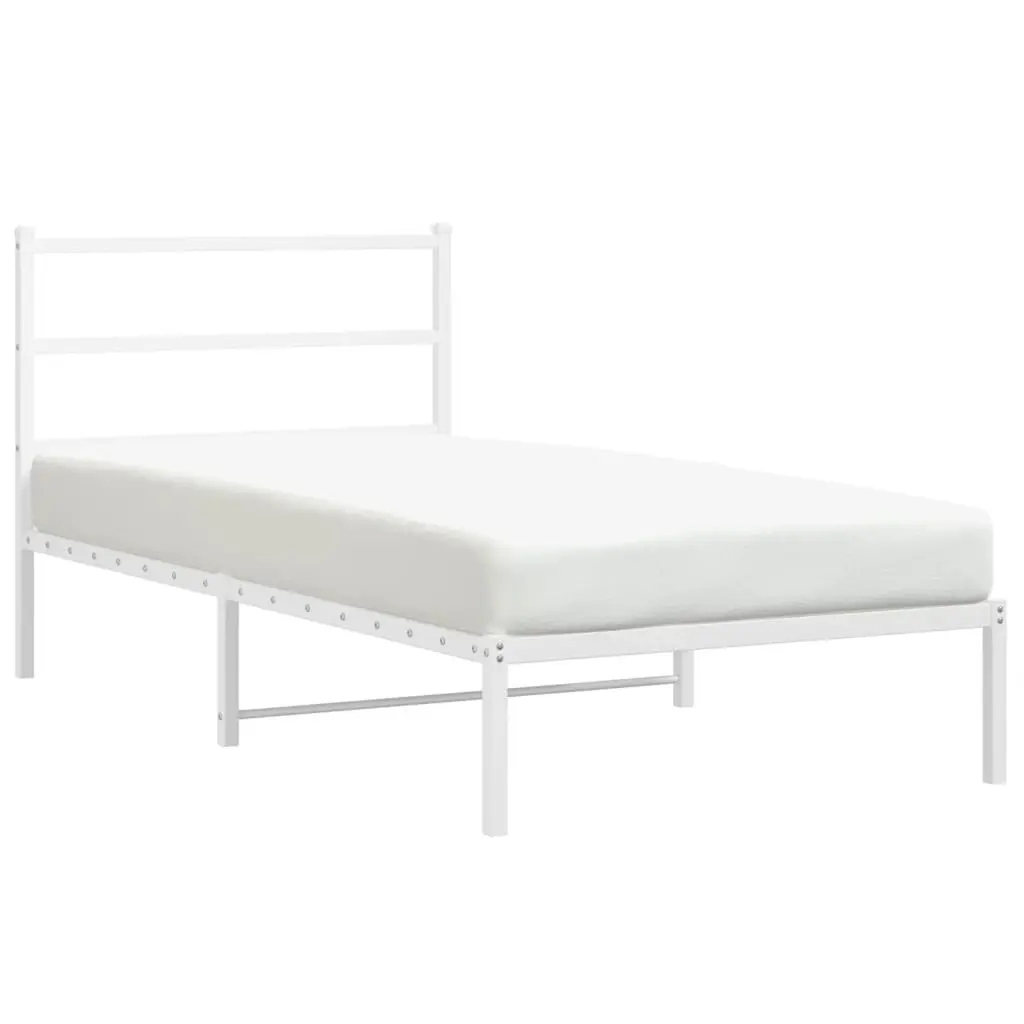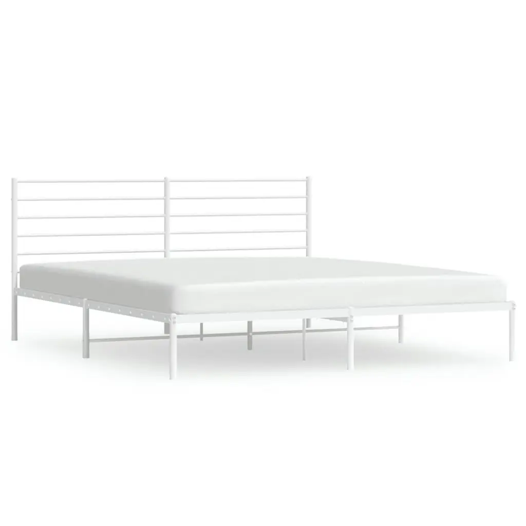 Vidaxl Bed Frame White Powder-Coated Steel Full Bed Frame Rectangular