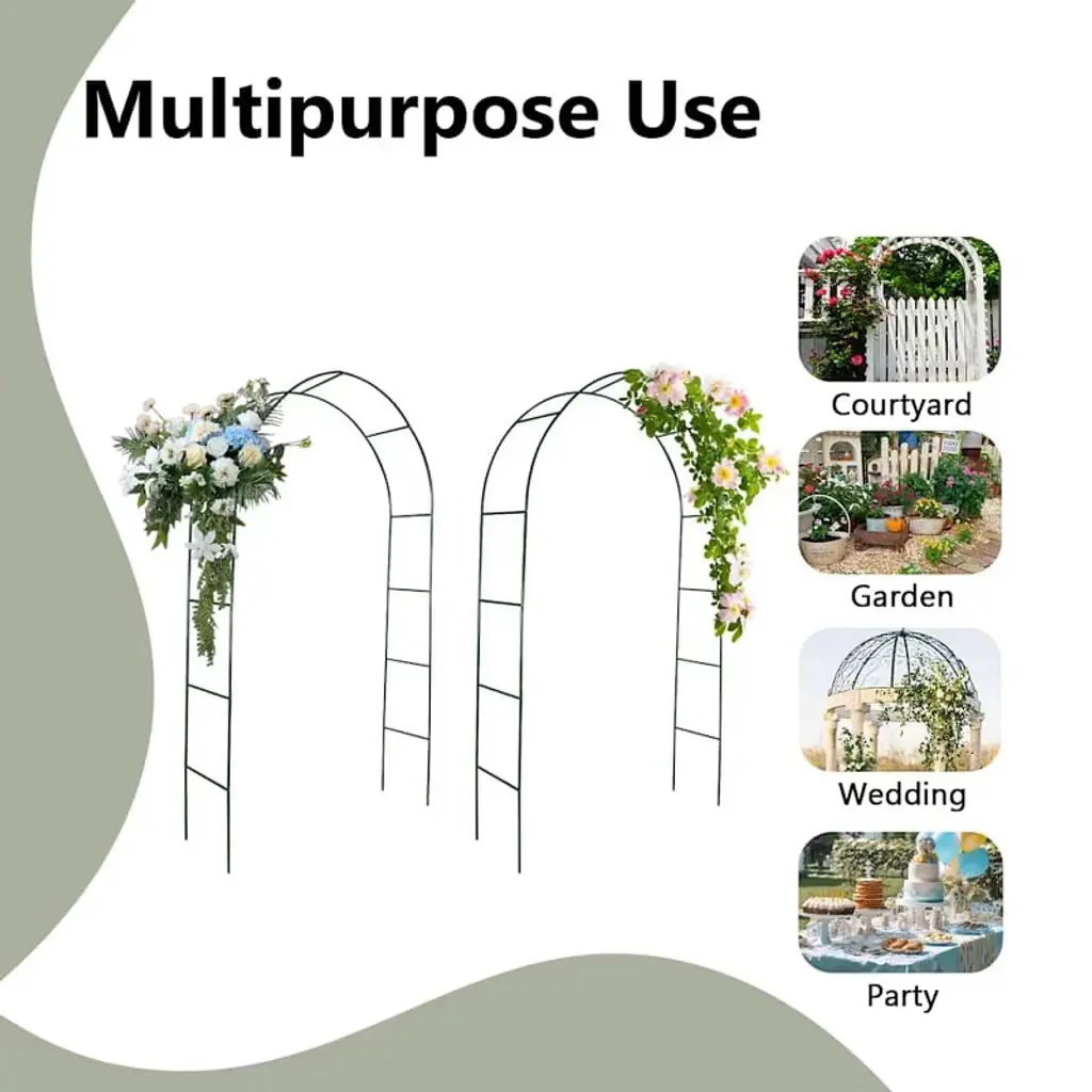 This set of two garden arches is designed to be a stunning focal point for any garden, patio, or terrace. With a robust iron construction and a classic dark green finish, these arches provide both beauty and reliable support for your climbing plants.Heavy-Duty & Weather-Resistant Construction• Crafted from durable iron with a weather-proof, powder-coated finish for long-lasting use• Maintains shape and stability, supporting plants without deforming over time• Resists UV damage and stands up to outdoor elementsPerfect for Climbing Plants• Ideal for roses, ivies, vines, and other climbing plants• Encourages lush, vertical growth for a vibrant garden displayVersatile Decoration & Easy Assembly• Use as a wedding arch, garden entrance, or decorative centerpiece• Can be adorned with flowers, lights, or fabric for special occasions• Simple assembly with clear instructions includedProduct Details• Set includes 2 garden arches• Dimensions (each arch): 55.1" W x 15.4" D x 94.5" H• Color: Dark green• Material: Iron• Assembly required• SKU: 40776Transform your outdoor space with these elegant garden arches, perfect for creating a charming walkway or a beautiful backdrop for your favorite climbing plants.