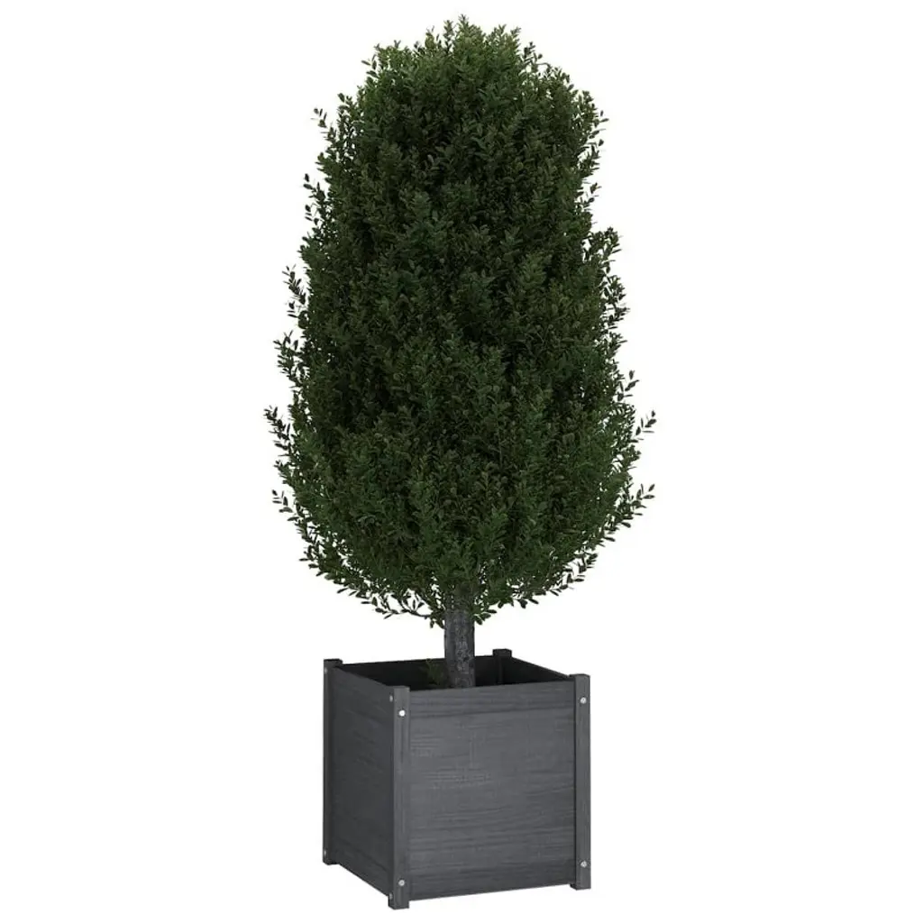 Vidaxl Garden Planter Grey Solid Pinewood Medium Tough Garden Planter