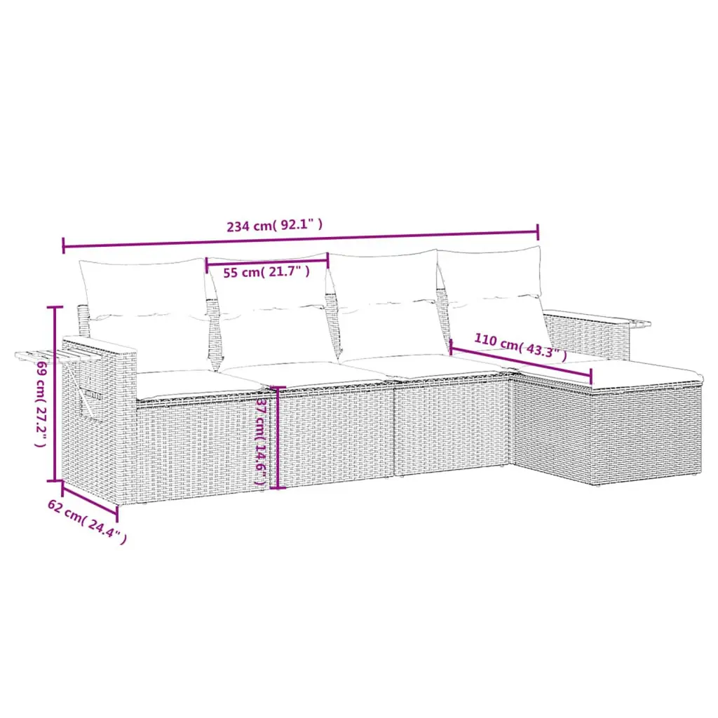 This 5-Piece Garden Sofa Set is a warm touch for any outdoor area. It’s designed to comfortably lounge up to five people. With its modern vibe in black and cream, it combines strong poly rattan and solid acacia wood, creating a perfect relaxation spot. It's ideal for balconies, terraces, or patios, making it perfect for social gatherings or some peaceful alone time. Modular Design: With a versatile modular setup, this sofa set lets you customize the arrangement however you wish. Robust Frame: Crafted from powder-coated steel, the frame is strong enough to handle daily use and outdoor conditions without compromising its durability. Removable Cushion Covers: Cushions have zippered covers that make cleaning a breeze, keeping your furniture looking fresh and appealing. Weather-Resistant Material: Built from UV-resistant materials, this sofa set is made to last against sun exposure, maintaining its look for years. Comfortable Seating: Featuring plush cushions and ample space, this set is perfect for relaxing, ideal for enjoying warm afternoons or evening gatherings with family and friends.