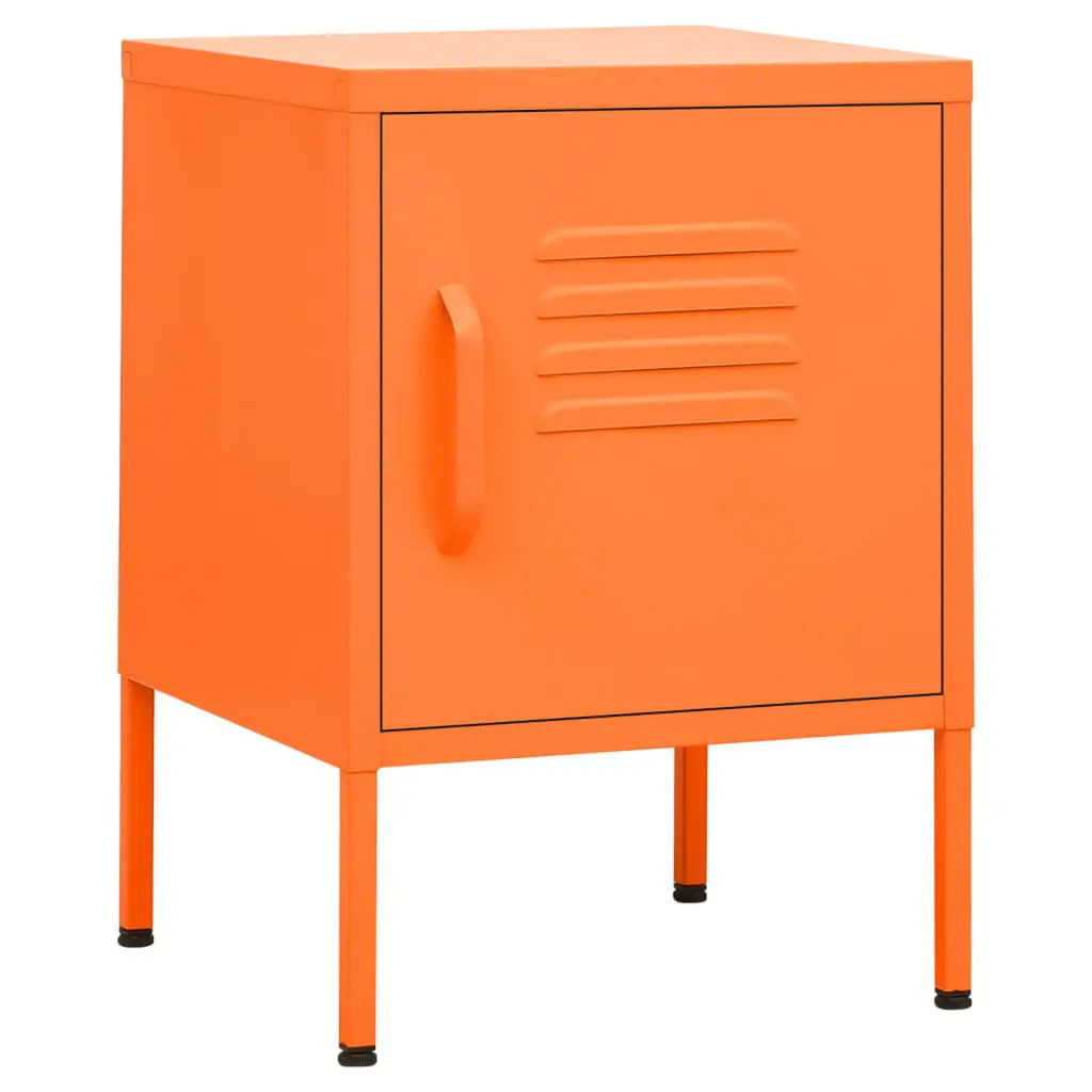 This compact nightstand set brings a lovely splash of orange, perfect for brightening up any bedroom or living room. The sleek, modern design fits in with lots of decor styles, and its practical function makes it a top pick for storing nighttime essentials or showing off decorative pieces. Vibrant Aesthetic: The bold orange color of this nightstand set instantly lifts your space, creating a warm and welcoming vibe. This eye-catching piece is a great choice for those wanting to show off their unique style.Robust Construction: Crafted from quality steel, this piece is built to last, ensuring it’s reliable over time. Its tough nature means it can handle all your storage needs.Functional Design: With adjustable shelves, this nightstand can adapt to items of different heights, catering to various storage needs. Rearrange the shelving easily to match your own setup.Lockable Security: With a secure locking mechanism, this nightstand offers not just storage but also keeps your personal items safe. Great for valuables or medical supplies.Space-Saving Friendly: Designed to be compact, this set fits neatly beside beds or sofas, making it a perfect choice for smaller living areas.