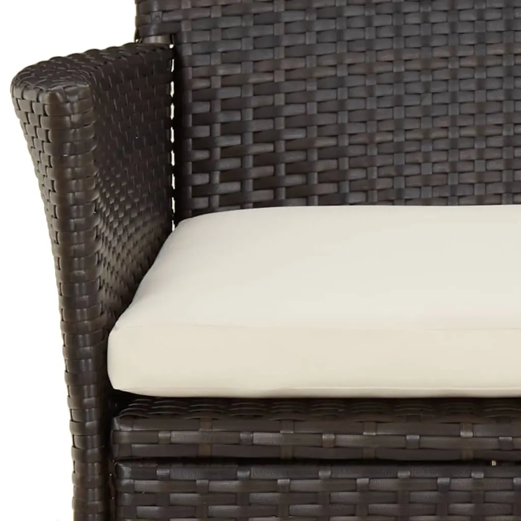 This outdoor dining set combines elegance and comfort, perfect for gatherings on your garden balcony or patio. Crafted from sturdy poly rattan with classic brown tones, the set can accommodate up to eight people, providing a welcoming space for dining and relaxation. Weather Resistant: Built to handle outdoor conditions, ensuring long-lasting durability. This dining set's weather-resistant fabric makes it great for outdoor use, letting you enjoy meals in the sun or under the stars.Comfortable Seating: Each chair has thick, removable cushions that offer top-notch comfort. These cushions let you sit for ages during dinners and gatherings, perfect for family meals or entertaining friends.Adjustable Armrests: The armrests can be easily adjusted to match your preference. Whether you prefer a laid-back lounging position or a more upright seat, this makes for a comfy dining experience.Sturdy Construction: Made with solid powder-coated steel frames, the set ensures stability and support during daily use. Its robust build guarantees safety and longevity, perfect for outdoor enjoyment through every season.Easy Maintenance: The materials are simple to clean and look after, meaning you can spend less time on maintenance and more time enjoying your outdoor space. Plus, proper care keeps it looking good and functional, making it a smart choice for outdoor settings.