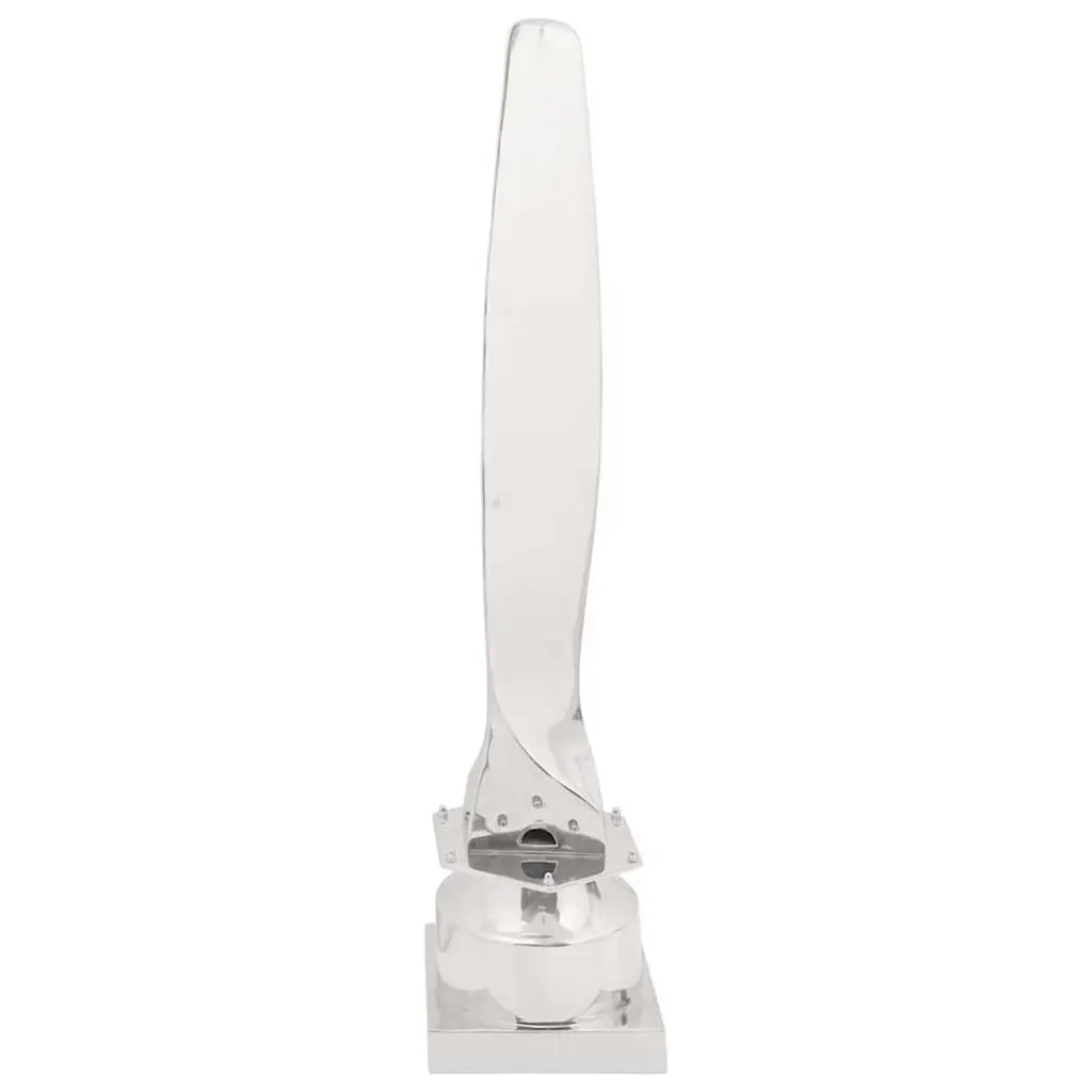 Experience art in a fresh way with this modern half propeller sculpture that perfectly mixes looks and purpose. Its polished silver sheen and high-gloss finish makes it the standout piece that elevates any living room. The well-crafted shape captures movement and flow, showcasing innovation and creativity in what used to be a simple space. Polished Materials: This sculpture is made from high-quality aluminum, known for being durable and showcasing intricate details. The choice of material makes it a solid yet eye-catching addition to any collection, with its shiny surface drawing in the eye. Decorative Inlays: These ornamental touches give depth and character to the sculpture, playing with light and adding a touch of sophistication. They match perfectly with the polished aluminum, making the whole sculpture a conversation starter in your home. Modern Style: With its simple functionality, this sculpture embodies the principles of modern design with clean lines and minimal embellishments. This not only displays its inherent artistry but also ensures it fits in with many different décors, from traditional to contemporary. Recommended Usage: Great for indoor spaces like the living room, this sculpture is sure to elevate the vibe wherever it’s placed. Its sleek shape means it fits right into both large open spaces and cozy corners. Care & Maintenance: It's designed for easy upkeep, needing just a quick wipe with a dry cloth to keep it looking shiny. This simple care routine guarantees it remains an attractive and elegant addition to your space, fitting perfectly into any lifestyle.