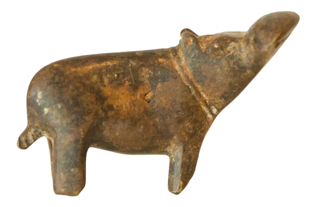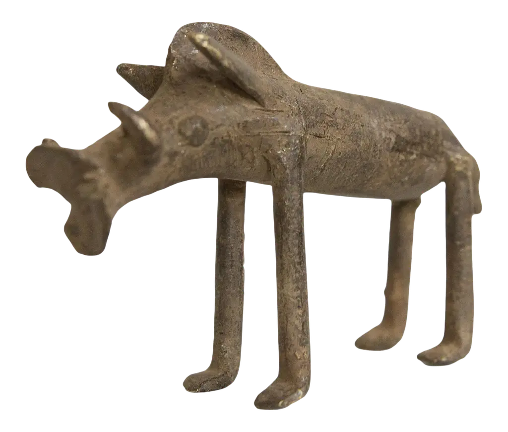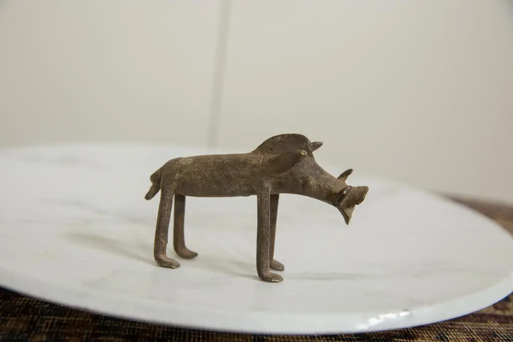 :: Vintage handmade African bronze warthog. Circa mid 20th century and possibly older, this piece has such incredible handmade charm and no two are identical. Create a scene of wildlife with many of our vintage African animal sculptures or add just one to the shelf, these are beautiful collectibles that you or someone you love will cherish forever. As this item is in vintage condition, it may show signs of age and use. You may receive one that is slightly different than the one photographed since we have multiples of this item. Please contact us prior to purchase if you would like us to send additional snapshots of the one we would be sending.