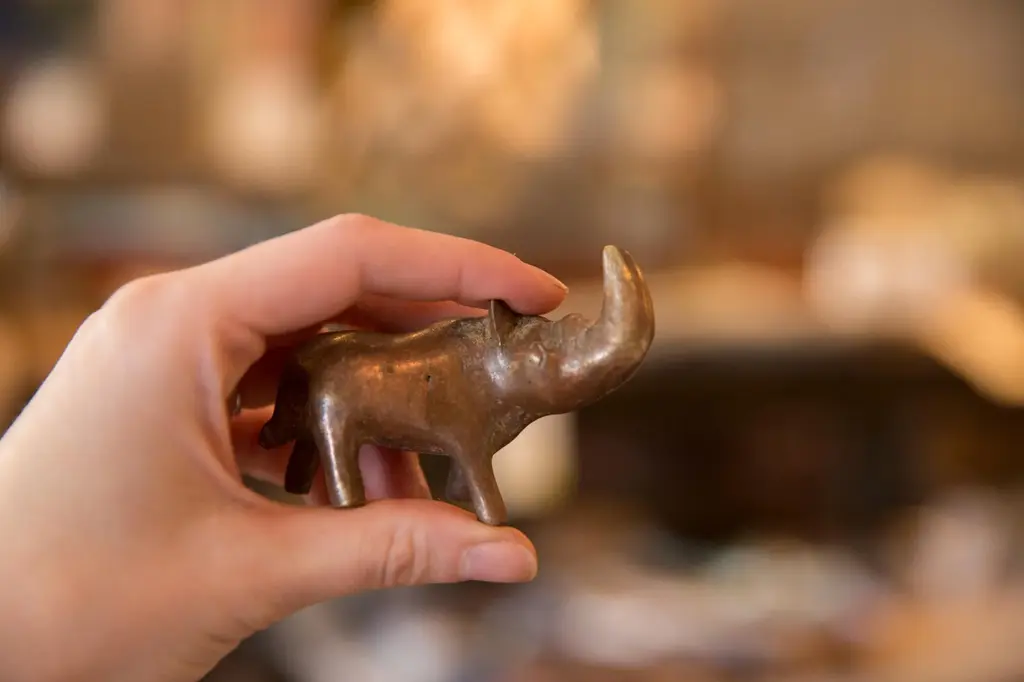 :: Vintage handmade copper casting of a medium sized rhinoceros. Circa mid 20th century and possibly older, this piece has such incredible handmade charm and no two are identical. Create a scene of wildlife with many of our vintage African animal sculptures or add just one to the shelf, these are beautiful collectibles that you or someone you love will cherish forever.