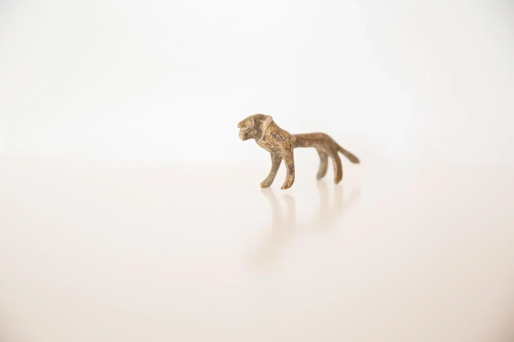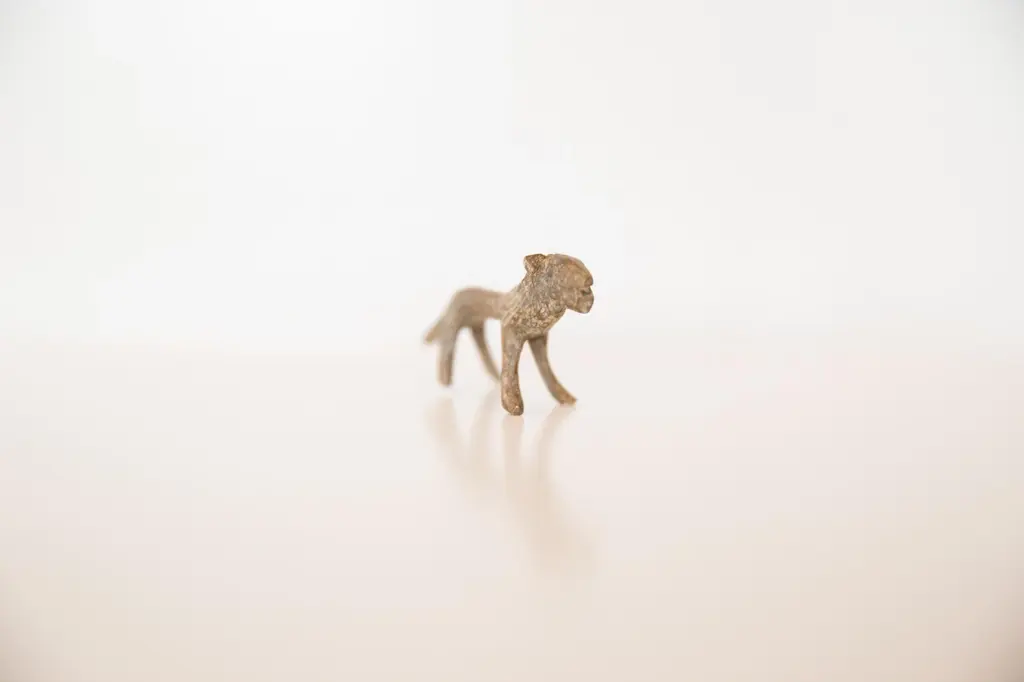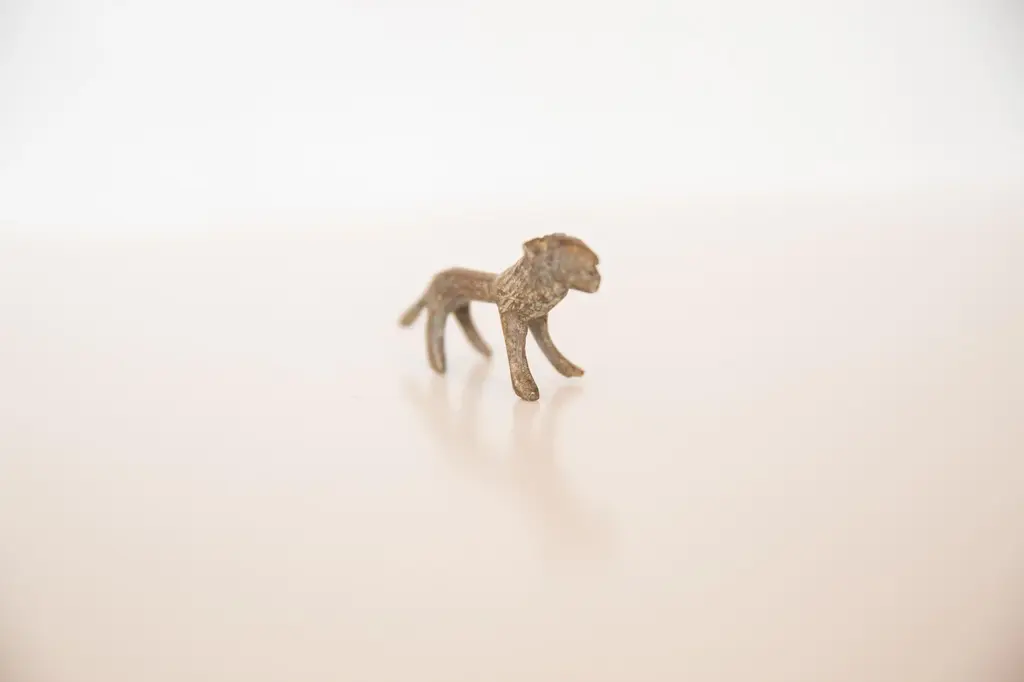 :: Vintage handmade bronze sculpture of a mini lion. Circa mid 20th century and possibly older, this piece has such incredible handmade charm and no two are identical. As this item is in vintage condition, it may show signs of age and use. Possibly an example of an Ashanti gold weight, or Mbramoo, which were used in the measuring of gold and gold dust. Create a scene of wildlife with many of our vintage African animal sculptures or add just one to the shelf, these are beautiful collectibles that you or someone you love will cherish forever. You may receive one that is slightly different than the one photographed since we have multiples of this item. Please contact us prior to purchase if you would like us to send additional snapshots of the one we would be sending.