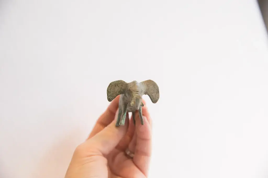 :: Vintage handmade African oxidized elephant figurine. Circa mid 20th century, though possibly older, this piece has such incredible handmade charm and no two are identical. Create a scene of wildlife with many of our vintage African animal sculptures or add just one to the shelf, these are beautiful collectibles that you or someone you love will cherish forever. As this item is in vintage condition, it may show signs of age and use. Kindly note the item photographed may not necessarily be an identical to that which you receive. This listing is for a one of a kind handmade item, however, we do have multiples which are being sold under one parent listing. Minor and subtle differences may apply to the finish, dimensions, slight imperfections, and in some cases a male or female being substituted interchangeably. Size measures: 2" x 3" x 1.5".